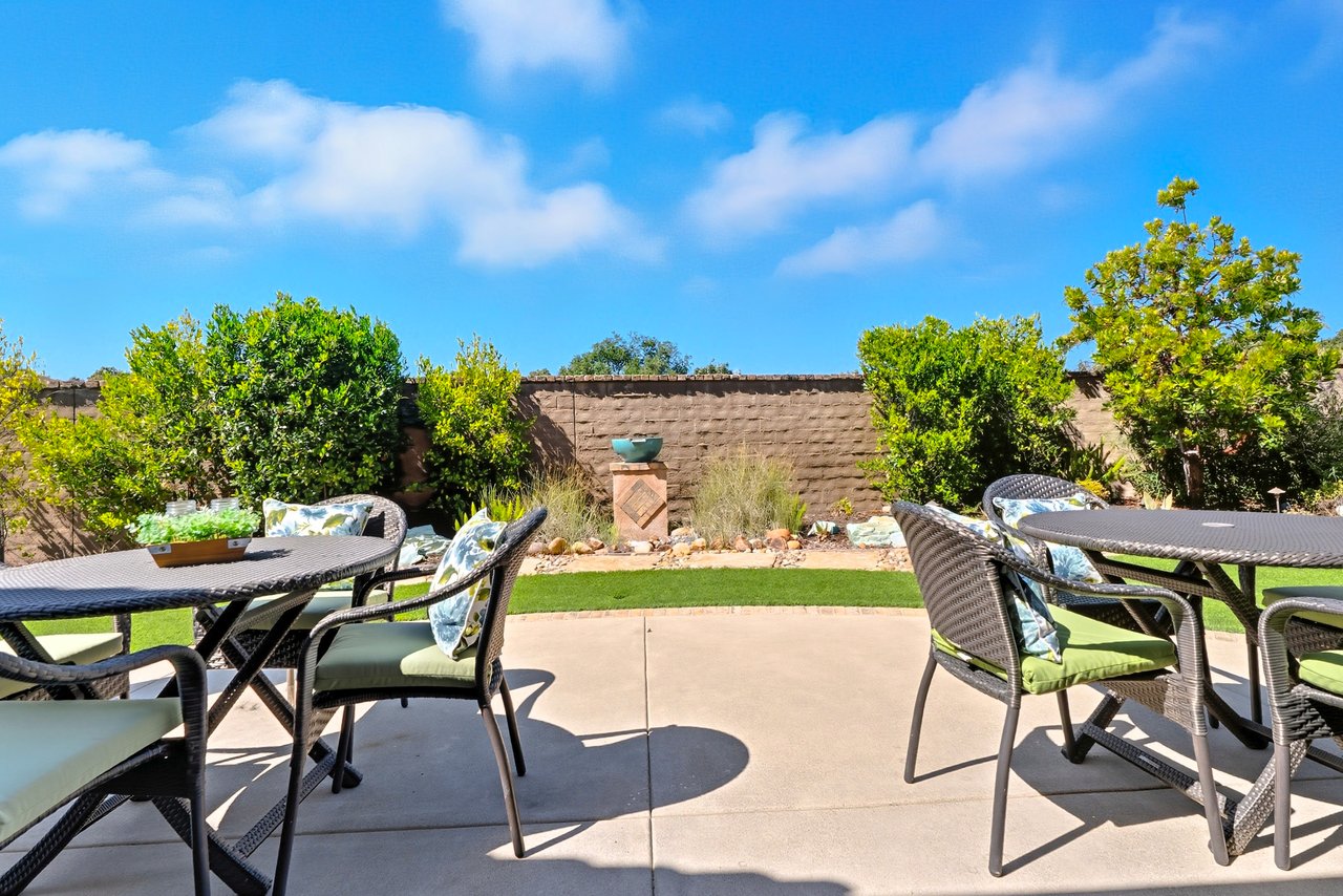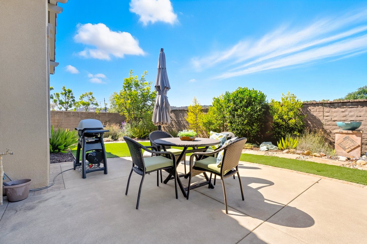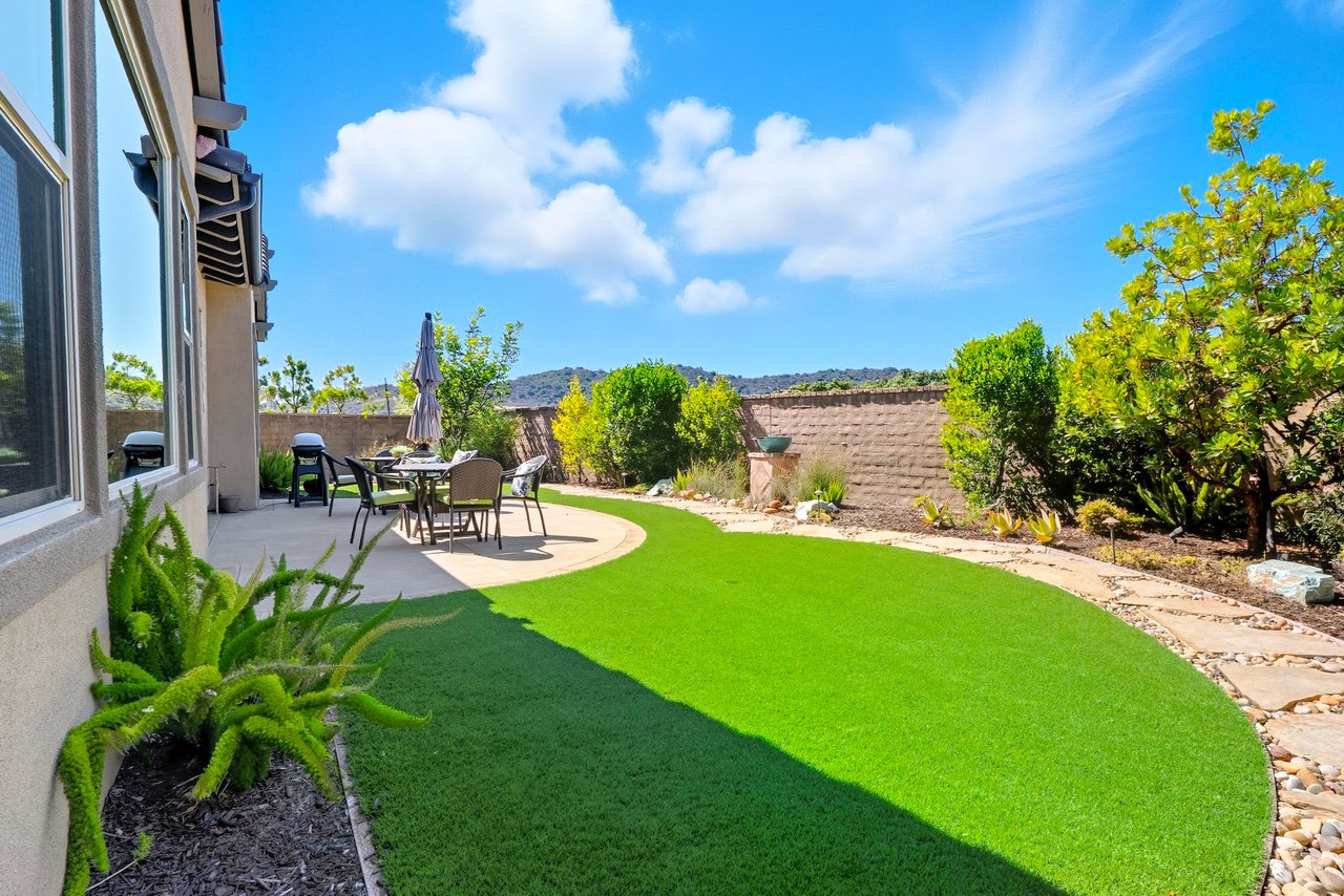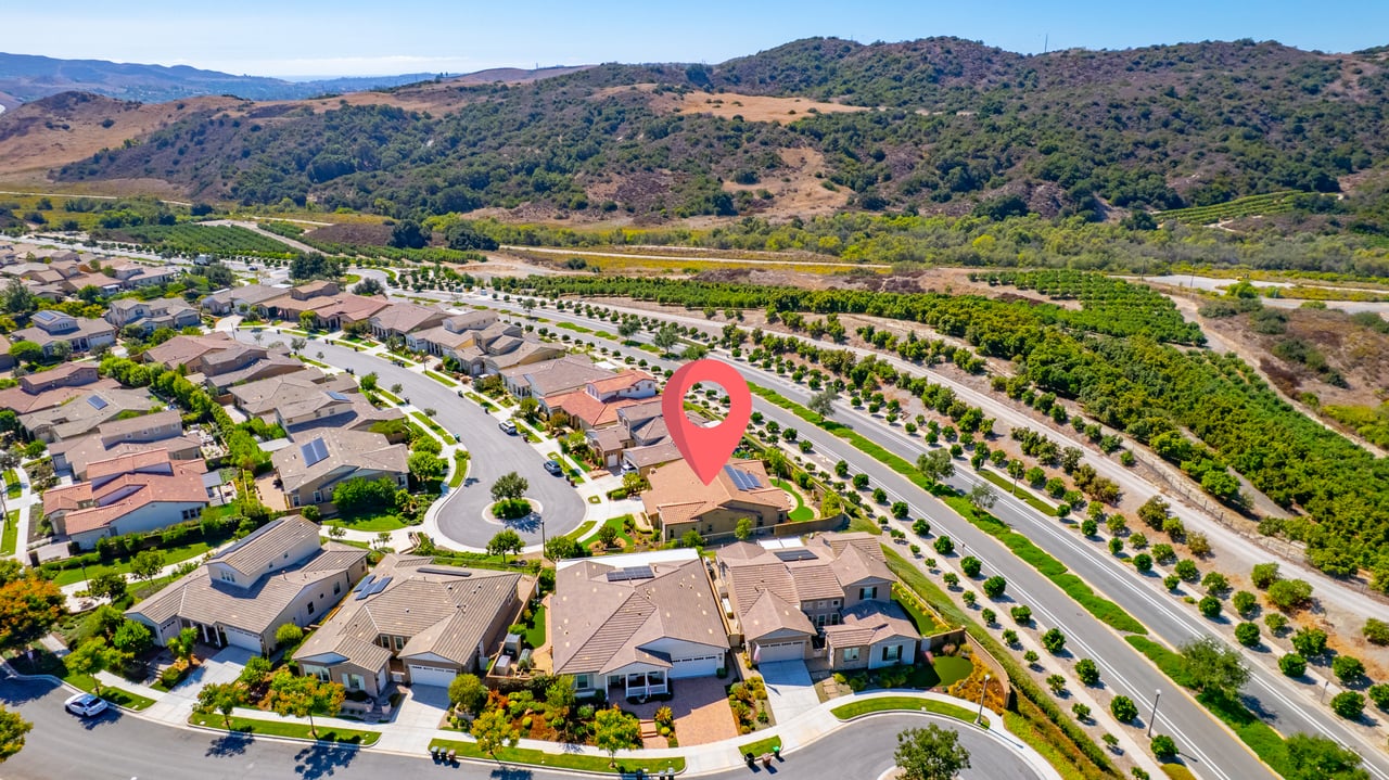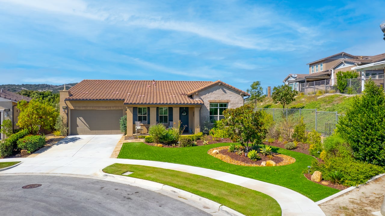 Discover the perfect blend of elegance, comfort, and low-maintenance living in this single-level corner View home tucked away at the end of a tranquil cul-de-sac in the award-winning community of Rancho Mission Viejo. Located in the sought-after Gavilan 55+ Alondra enclave, this residence pairs timeless traditional architecture and a welcoming driveway with today's modern upgrades. Step inside to experience a thoughtfully designed open-concept floor plan where the living room, dining area, and expansive kitchen island flow together seamlessly ideal for both daily living and effortless entertaining. The light-filled interior is anchored by a white and bright kitchen with ample cabinetry, sleek finishes, and generous workspace. This home offers 2 spacious bedrooms plus a versatile office/den, along with a Great Room with wood flooring in the main living areas and plush carpeting in the primary and secondary bedrooms for comfort. The primary suite delivers a serene retreat with ample closet space and spa-style finishes. Outside, the home's allure continues with an impeccably landscaped backyard that spans an impressive 8,301 sq ft lot. Designed for easy care yet stunning curb appeal, this outdoor oasis is the perfect setting for intimate gatherings or grand celebrations. A highlight is the inviting Arizona Room with a cozy fireplace, perfect for year-round enjoyment. Additional upgrades include paid solar, built in refrigerator, wine refrigerator, plantation shutters, very private location, and so much more. This rare cul-de-sac property combines privacy, premium finishes, and enviable outdoor living ready to welcome you home to the best of Rancho Mission Viejo's active 55+ lifestyle. Beyond the home, you'll enjoy a vibrant, resort-style lifestyle with exclusive access to private Gavilan 55+ amenities including The Perch, The Hacienda, The Outlook, The BBQ Barn, and The Getaway. Stay active and connected with a state-of-the-art fitness center, saltwater pool, spa, cabanas, bocce ball courts, yoga studio, fire pits, and social lounges. And when the grandkids visit? You'll have full access to Rancho Mission Viejo's award-winning all-ages amenities, arcade, community farms, fitness centers, indoor basketball gym, putting green, Sports park, tennis and pickleball courts, parks, and events that make this community unlike any other.