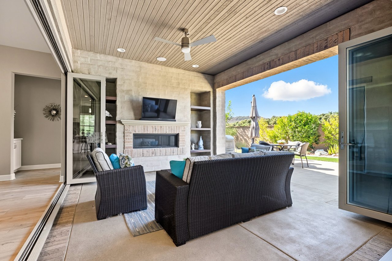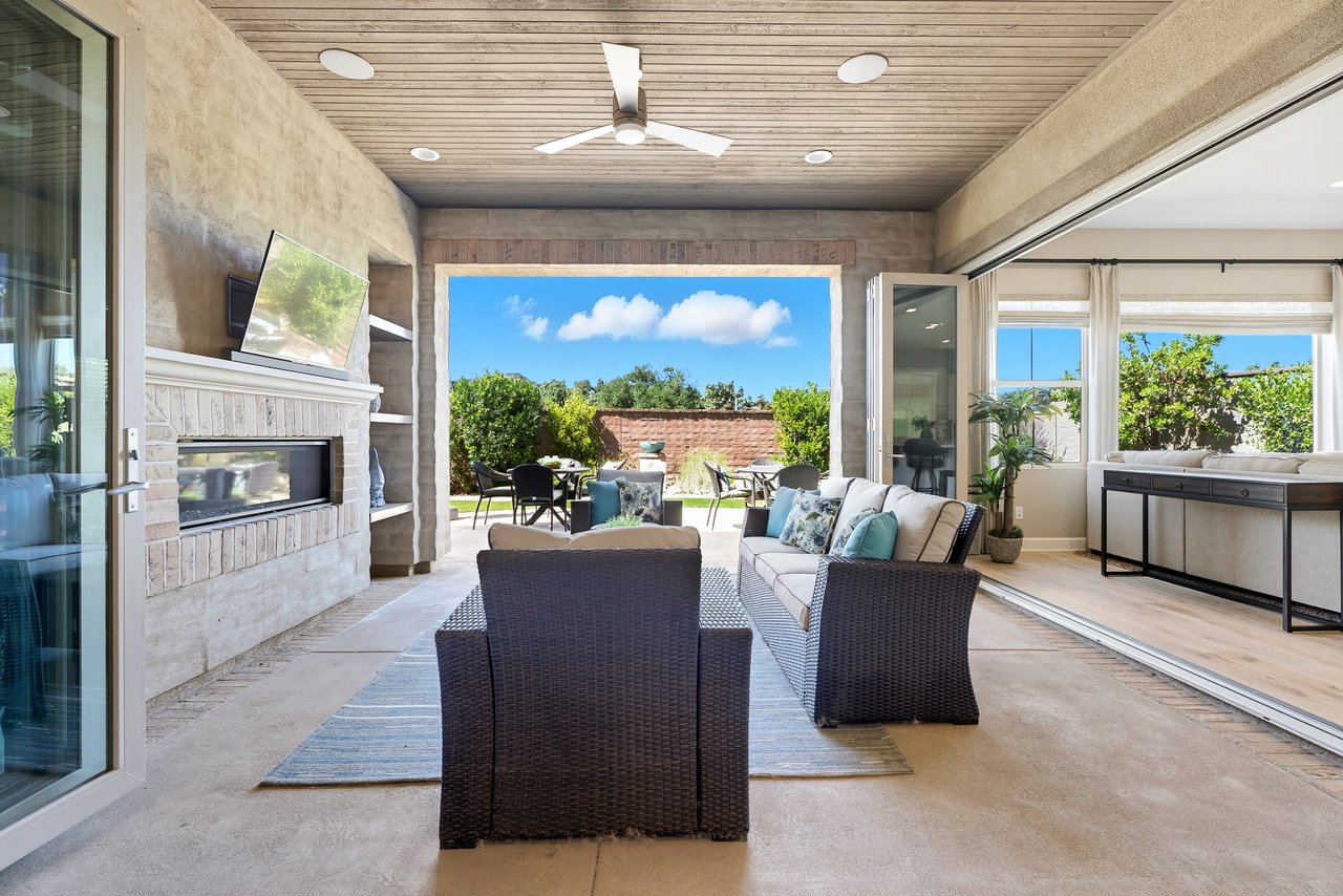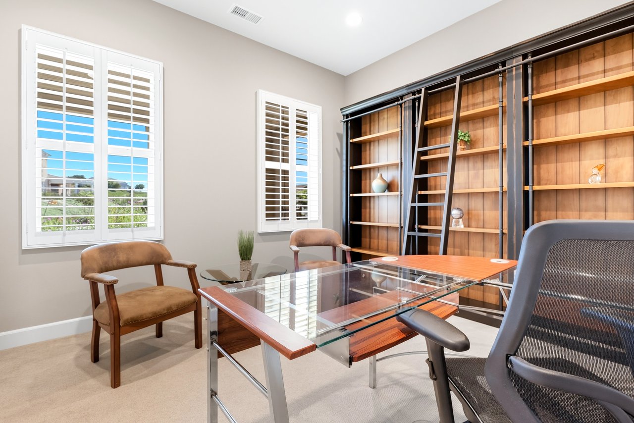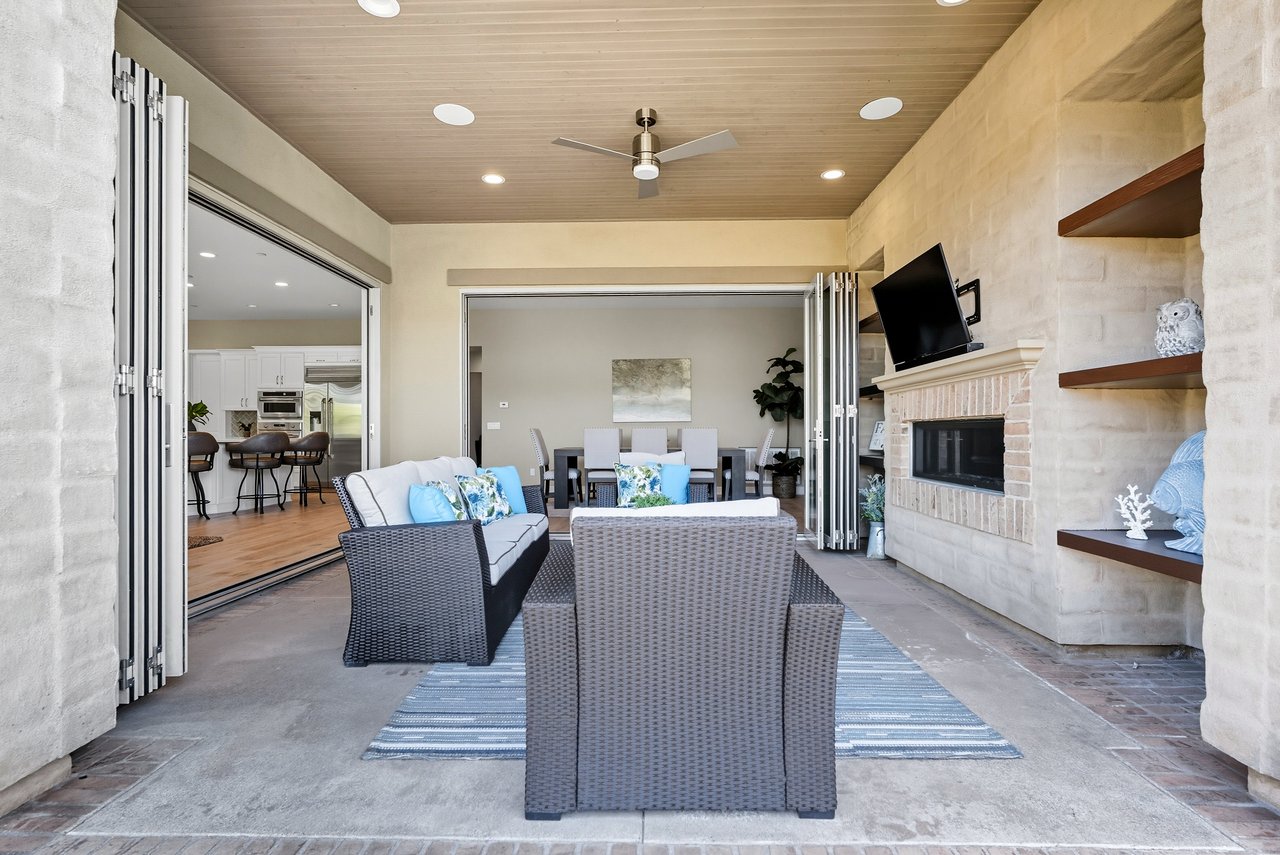 Discover the perfect blend of elegance, comfort, and low-maintenance living in this single-level corner View home tucked away at the end of a tranquil cul-de-sac in the award-winning community of Rancho Mission Viejo. Located in the sought-after Gavilan 55+ Alondra enclave, this residence pairs timeless traditional architecture and a welcoming driveway with today's modern upgrades. Step inside to experience a thoughtfully designed open-concept floor plan where the living room, dining area, and expansive kitchen island flow together seamlessly ideal for both daily living and effortless entertaining. The light-filled interior is anchored by a white and bright kitchen with ample cabinetry, sleek finishes, and generous workspace. This home offers 2 spacious bedrooms plus a versatile office/den, along with a Great Room with wood flooring in the main living areas and plush carpeting in the primary and secondary bedrooms for comfort. The primary suite delivers a serene retreat with ample closet space and spa-style finishes. Outside, the home's allure continues with an impeccably landscaped backyard that spans an impressive 8,301 sq ft lot. Designed for easy care yet stunning curb appeal, this outdoor oasis is the perfect setting for intimate gatherings or grand celebrations. A highlight is the inviting Arizona Room with a cozy fireplace, perfect for year-round enjoyment. Additional upgrades include paid solar, built in refrigerator, wine refrigerator, plantation shutters, very private location, and so much more. This rare cul-de-sac property combines privacy, premium finishes, and enviable outdoor living ready to welcome you home to the best of Rancho Mission Viejo's active 55+ lifestyle. Beyond the home, you'll enjoy a vibrant, resort-style lifestyle with exclusive access to private Gavilan 55+ amenities including The Perch, The Hacienda, The Outlook, The BBQ Barn, and The Getaway. Stay active and connected with a state-of-the-art fitness center, saltwater pool, spa, cabanas, bocce ball courts, yoga studio, fire pits, and social lounges. And when the grandkids visit? You'll have full access to Rancho Mission Viejo's award-winning all-ages amenities, arcade, community farms, fitness centers, indoor basketball gym, putting green, Sports park, tennis and pickleball courts, parks, and events that make this community unlike any other.