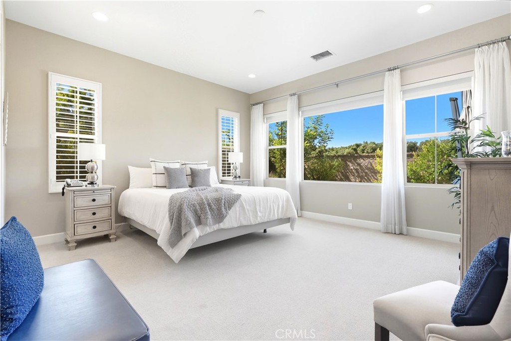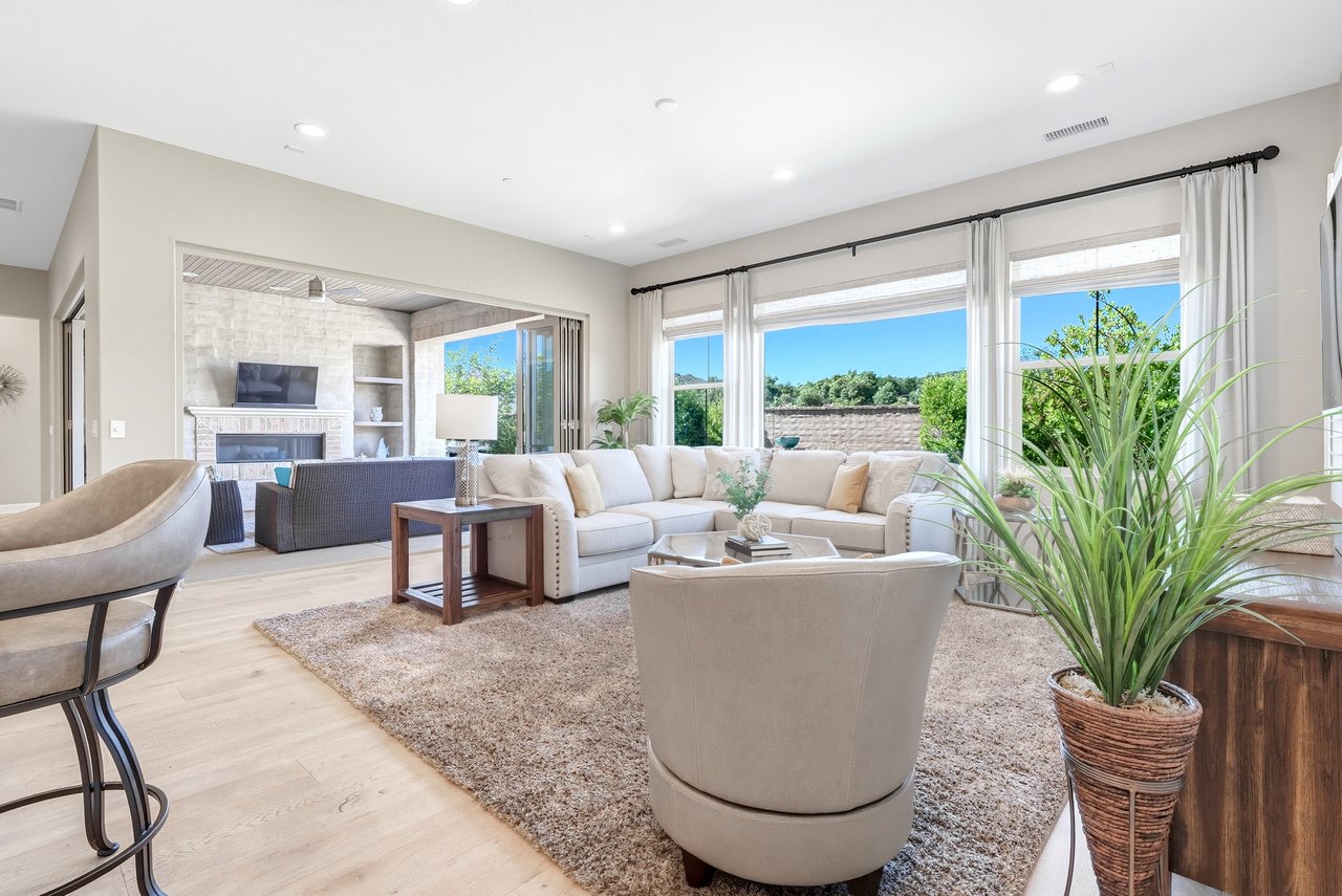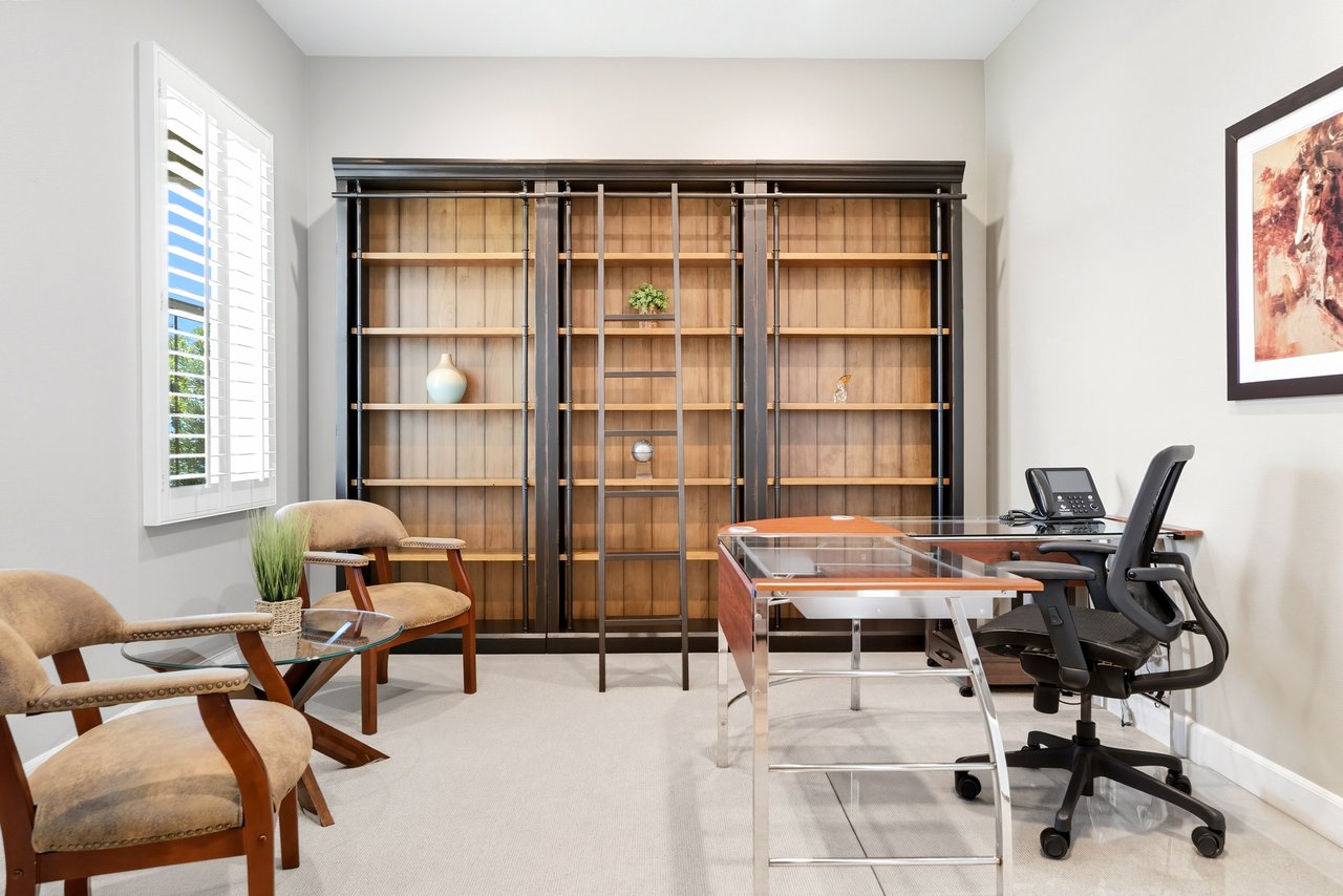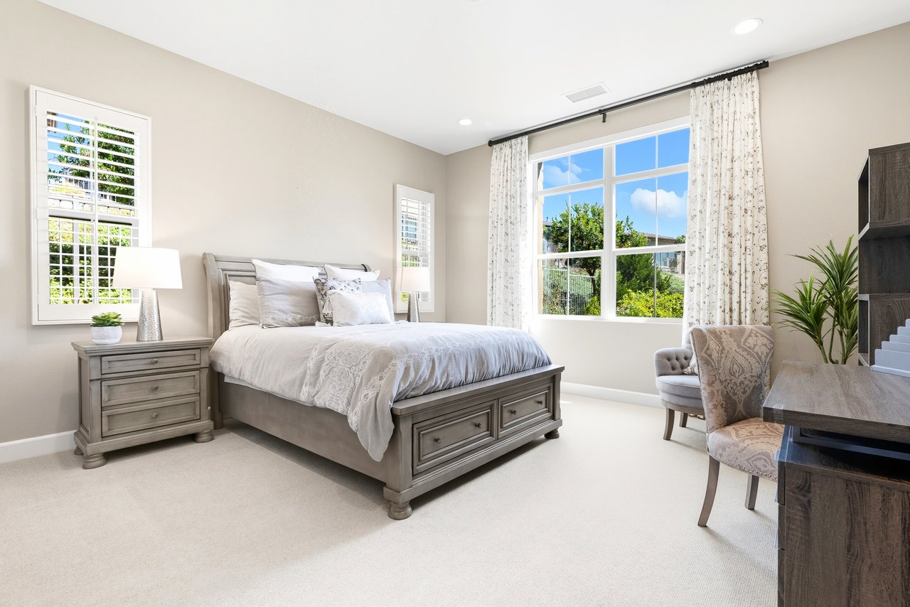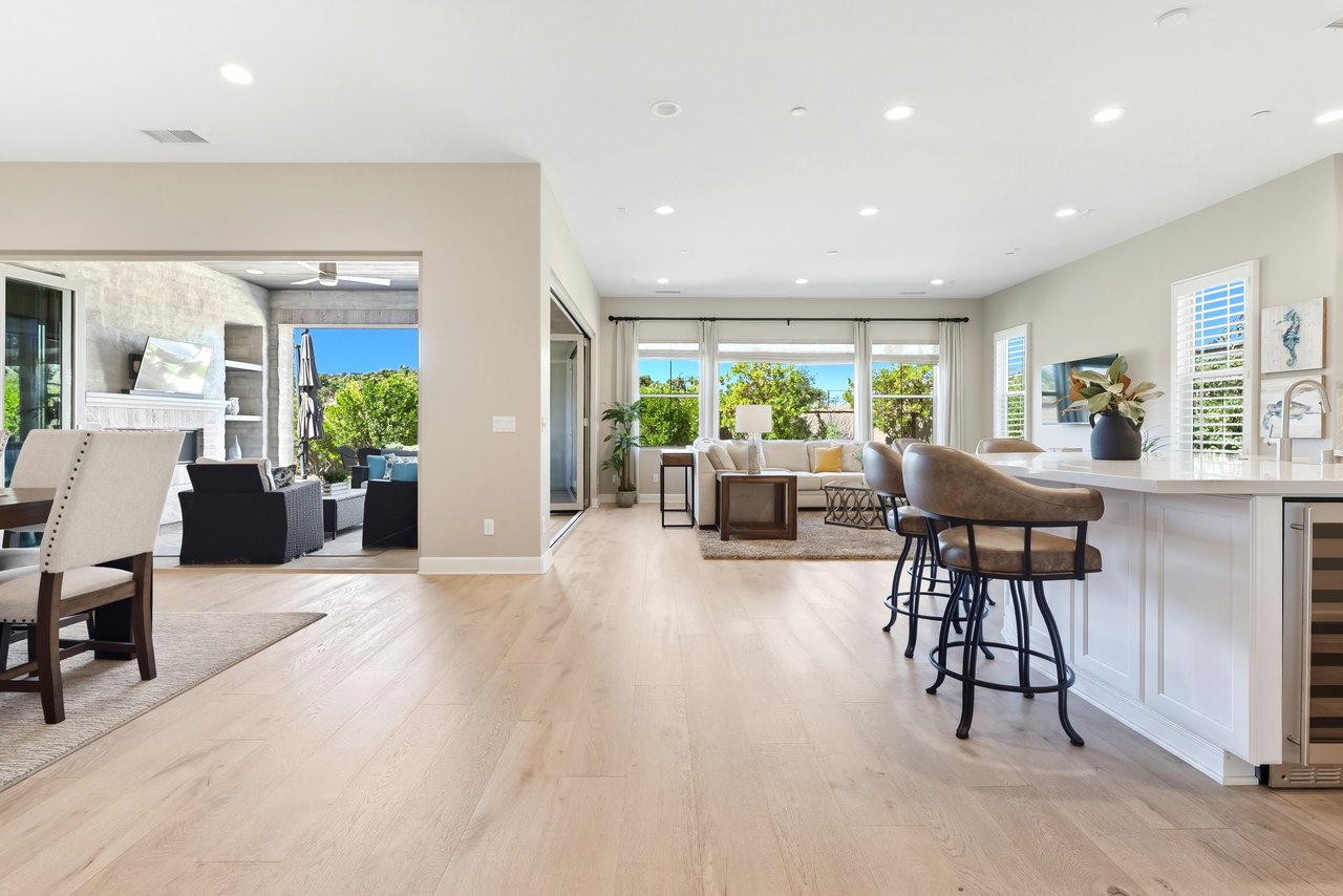 Discover the perfect blend of elegance, comfort, and low-maintenance living in this single-level corner View home tucked away at the end of a tranquil cul-de-sac in the award-winning community of Rancho Mission Viejo. Located in the sought-after Gavilan 55+ Alondra enclave, this residence pairs timeless traditional architecture and a welcoming driveway with today's modern upgrades. Step inside to experience a thoughtfully designed open-concept floor plan where the living room, dining area, and expansive kitchen island flow together seamlessly ideal for both daily living and effortless entertaining. The light-filled interior is anchored by a white and bright kitchen with ample cabinetry, sleek finishes, and generous workspace. This home offers 2 spacious bedrooms plus a versatile office/den, along with a Great Room with wood flooring in the main living areas and plush carpeting in the primary and secondary bedrooms for comfort. The primary suite delivers a serene retreat with ample closet space and spa-style finishes. Outside, the home's allure continues with an impeccably landscaped backyard that spans an impressive 8,301 sq ft lot. Designed for easy care yet stunning curb appeal, this outdoor oasis is the perfect setting for intimate gatherings or grand celebrations. A highlight is the inviting Arizona Room with a cozy fireplace, perfect for year-round enjoyment. Additional upgrades include paid solar, built in refrigerator, wine refrigerator, plantation shutters, very private location, and so much more. This rare cul-de-sac property combines privacy, premium finishes, and enviable outdoor living ready to welcome you home to the best of Rancho Mission Viejo's active 55+ lifestyle. Beyond the home, you'll enjoy a vibrant, resort-style lifestyle with exclusive access to private Gavilan 55+ amenities including The Perch, The Hacienda, The Outlook, The BBQ Barn, and The Getaway. Stay active and connected with a state-of-the-art fitness center, saltwater pool, spa, cabanas, bocce ball courts, yoga studio, fire pits, and social lounges. And when the grandkids visit? You'll have full access to Rancho Mission Viejo's award-winning all-ages amenities, arcade, community farms, fitness centers, indoor basketball gym, putting green, Sports park, tennis and pickleball courts, parks, and events that make this community unlike any other.