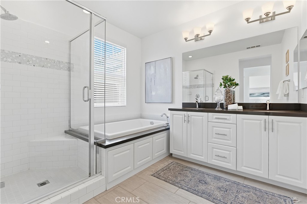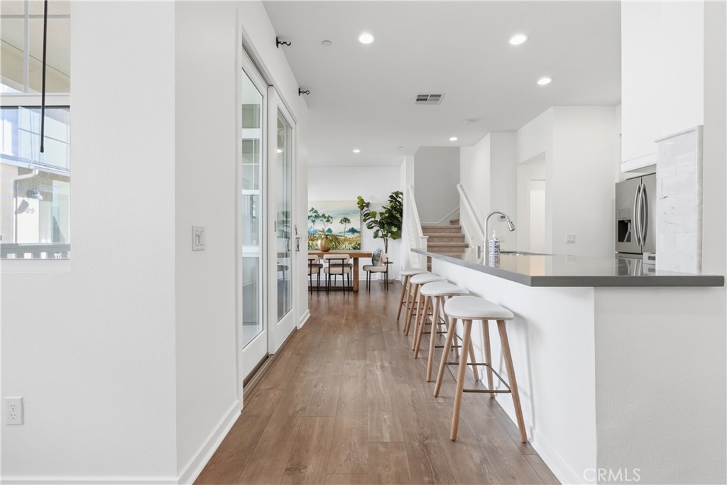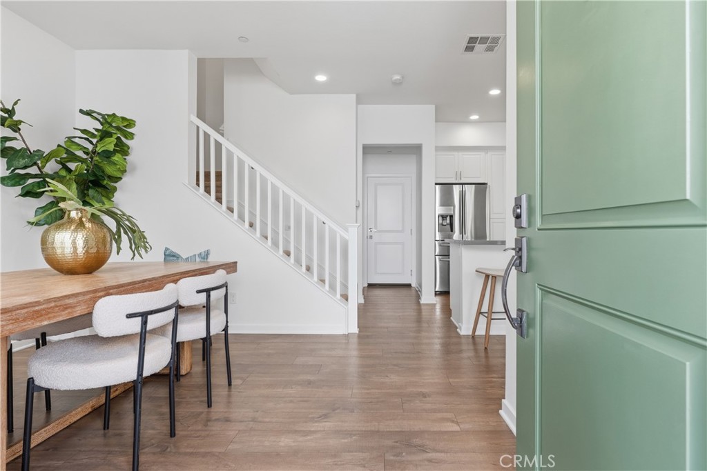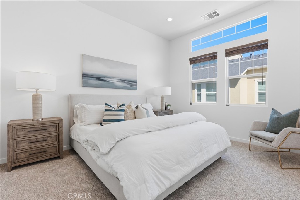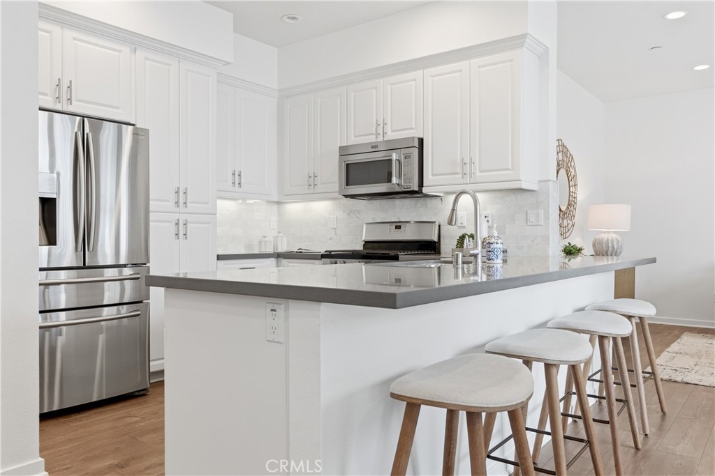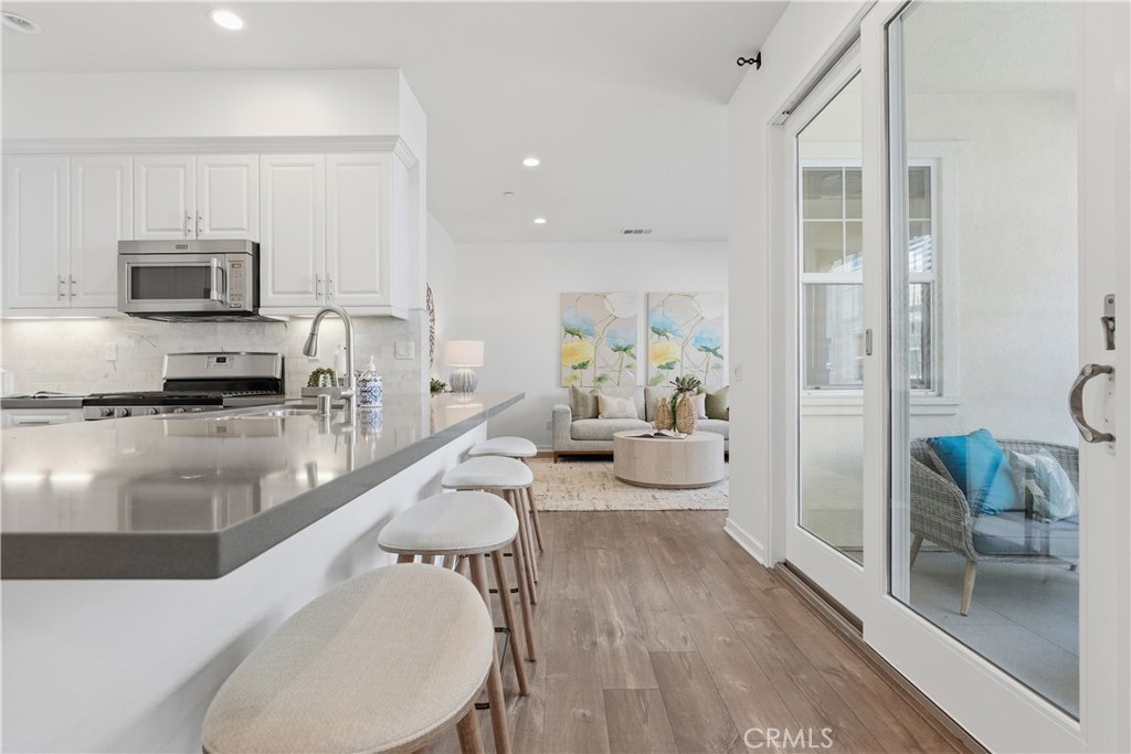 Welcome to 101 Patria, a beautifully maintained two-story townhome ideally located directly across the street from Esencia K-8 and The Pavilion, one of the most convenient and sought-after locations in all of Rancho Mission Viejo. Thoughtfully refreshed with fresh interior paint and brand-new carpet upstairs, this home offers a clean, move-in ready feel the moment you walk in. The main level is anchored by a well-appointed kitchen featuring quartz countertops, crisp white cabinetry, a modern subway tile backsplash, and sleek stainless steel appliances. A spacious breakfast bar opens seamlessly to the living area, creating the perfect setup for everyday living and effortless entertaining. Upstairs, all bedrooms are thoughtfully positioned for privacy. The primary suite feels like a true retreat, complete with dual sinks, quartz counters, a soaking tub, separate walk-in shower with custom tile work, and a generous walk-in closet. Additional highlights include durable laminate flooring, recessed lighting, and a bright, neutral interior that's ready to make your own. Beyond the home, enjoy being just a short walk to Canyon House Coffee Shop and Montessori on the Ranch, along with full access to Rancho Mission Viejo's resort-style pools, fitness centers, parks, and trails. Immerse yourself in the exceptional amenities of Rancho Mission Viejo, including the vibrant Ranch Camp, the state-of-the-art Ranch Cove community pool and gym, and countless recreational opportunities that define the unmatched lifestyle of this community. Exclusive to Rancho Mission Viejo residents are all amenities in the Villages of Sendero, Esencia, Rienda, and future Villages. There are community amenities for all from breath-taking resort-style pools and spas, Esencia school K-8, community farms, fitness centers, guest house, putting green, bocce ball courts, tennis and pickle ball courts, playgrounds, coffee shop, fire pits, an arcade and so much more!
