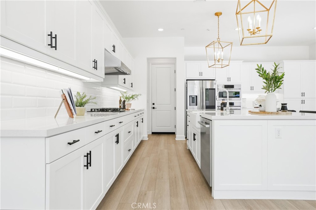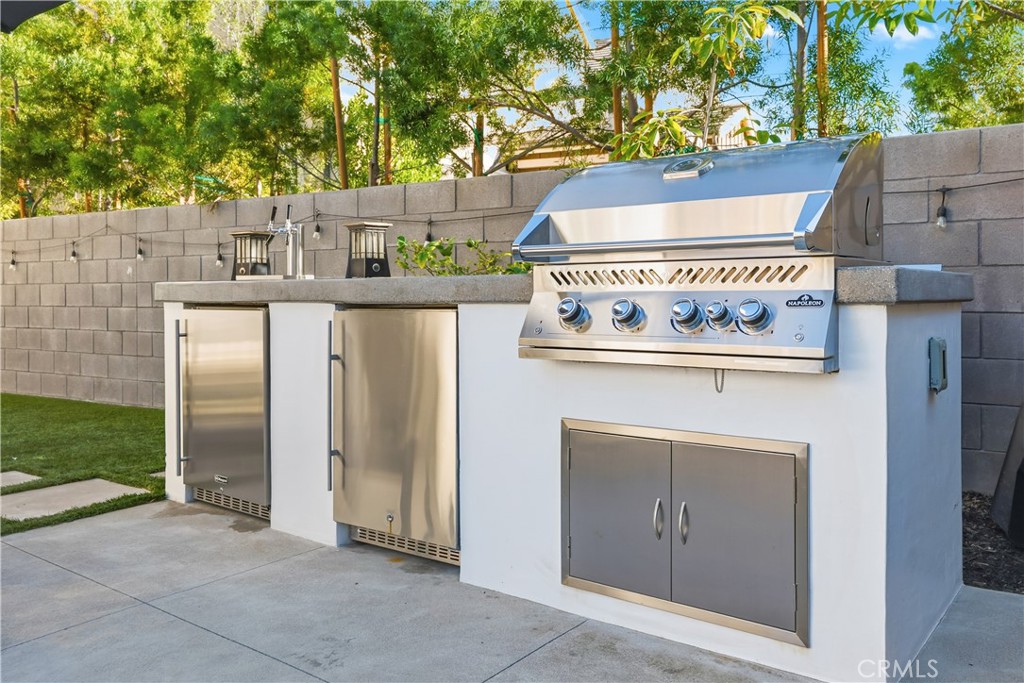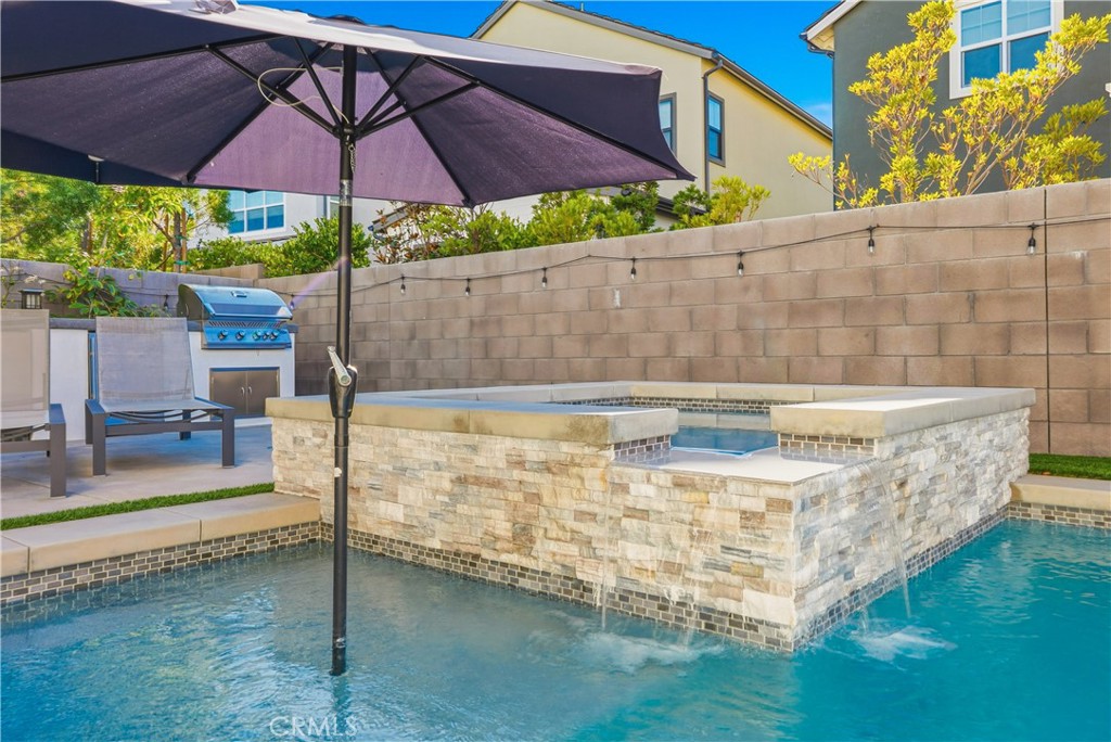 Discover the epitome of elevated California living in this exquisite Sterling Home--a residence that captures the essence of a luxury retreat while offering the comfort and warmth of home. Designed with impeccable taste and attention to detail, this four-bedroom, four-bathroom estate seamlessly blends contemporary sophistication with everyday functionality. A grand entryway opens to an expansive great room with an open floor plan framed by six-panel stacking doors that blur the line between indoor and outdoor living. The chef's kitchen is a masterpiece, featuring quartz countertops, a large center island, custom white cabinetry, Bosch double ovens, a five-burner gas range with hood, and a charming cappuccino station. Every finish has been thoughtfully curated--from the luxury vinyl plank flooring and plantation shutters, to the custom built-ins and sleek REMOTE CONTROLLED roller shades throughout the home. Upstairs, the primary suite serves as a serene sanctuary, offering a spa-like bath with floor-to-ceiling designer tile, dual vanities with quartz countertops, and a spacious walk-in shower. The upper level also includes an upgraded laundry room and a versatile loft--ideal for a home office, media lounge or secondary living space. The resort-caliber backyard is a true showpiece. Designed for both relaxation and entertaining, it showcases a sparkling saltwater pool and spa, a fully tiled built-in BBQ with dual refrigerators, beer tap, a cozy fire pit, large lawn, and generous covered seating. The remote-controlled pool and spa system make leisure effortless, while the seamless indoor-outdoor flow creates an ambiance of year-round vacation living. Additional highlights include a finished garage with custom cabinetry, epoxy flooring, and 21 PANEL SOLAR SYSTEM.