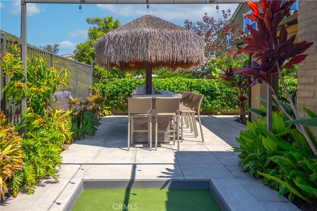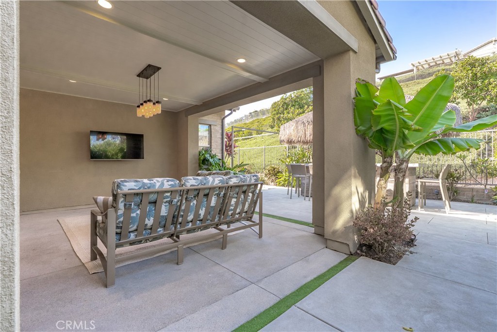 Welcome to 20 Entonar, a premier Plan 3 in the coveted Briosa enclave of Esencia, where scale, sophistication, and lifestyle converge. Offering 4 bedrooms, 4.5 bathrooms, and a generous loft that can easily become a fifth bedroom, office, or media room, this home delivers flexibility without compromise. Step inside and the volume and natural light immediately set the tone. The great room unfolds into a chef's kitchen centered around an oversized island, appointed with Wolf appliances, sleek cabinetry, and a filtered sparkling water system that elevates everyday living. Expansive sliding glass doors open wide, creating seamless indoor-outdoor flow to a backyard designed for both celebration and quiet evenings under the lights. The main-level primary suite is a true retreat, complete with a spacious walk-in closet and a spa-inspired bath with soaking tub and walk-in shower. A secondary en-suite bedroom downstairs provides ideal privacy for guests or multigenerational living. Out back, the experience becomes unforgettable. A custom Tiki bar with built-in BBQ and refrigerator, a bocce ball court, and multiple gathering spaces transform the yard into a private resort. Featuring one of the largest owned solar systems in the area, an EV charger, epoxy-finished garage with built-in storage, and thoughtfully curated high-end finishes throughout, this home reflects intention at every level. This is not just Briosa living. This is Rancho Mission Viejo at its finest. Immerse yourself in the exceptional amenities of Rancho Mission Viejo, including the vibrant Ranch Camp, the state-of-the-art Ranch Cove community pool and gym, and countless recreational opportunities that define the unmatched lifestyle of this community. Exclusive to Rancho Mission Viejo residents are all amenities in the Villages of Sendero, Esencia, Rienda, and future Villages. There are community amenities for all from breath-taking resort-style pools and spas, Esencia school K-8, community farms, fitness centers, guest house, putting green, bocce ball courts, tennis and pickle ball courts, playgrounds, coffee shop, fire pits, an arcade and so much more!