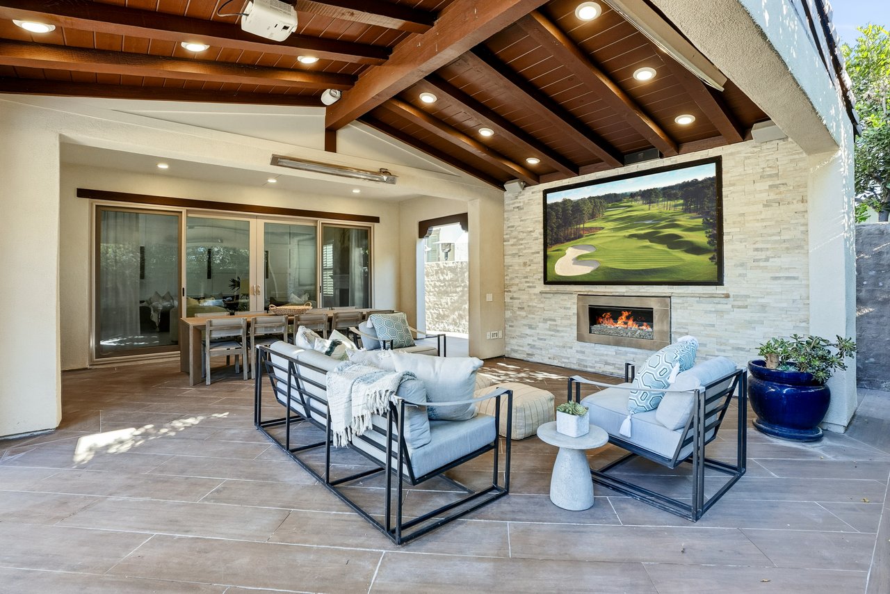 Welcome to 20 Formero, an exceptional Aubergine Plan 3 and one of the most sought-after floor plans in Rancho Mission Viejo. Set on a generous 7667 sq ft lot, this home offers an impressive entertainer's backyard with a natural stone saltwater pool with waterfall features and grottos, a private casita, and a refined blend of modern comfort and elevated design. Fresh interior paint and meticulous care make this 5 bedroom, 5.5 bath home truly move-in ready. The open concept layout is anchored by a spacious game room with a custom bar, creating the perfect setting for gatherings. Through the courtyard, the detached casita provides an ideal retreat for guests or multigenerational living and includes its own outdoor fireplace and lounge. The great room showcases a custom wood panel accent wall, an elegant fireplace, and expansive sliding doors for seamless indoor and outdoor living. The chef's kitchen features an oversized marble island, designer backsplash, premium appliances, and custom cabinetry that flows into the dining area. Upstairs, the primary suite delivers a spa-inspired experience with dual vanities and two walk-in closets. Three additional bedrooms, a loft, and a full laundry room complete the second level. The backyard is a true highlight with a firepit, custom California room, full outdoor kitchen with a 42" grill, bar seating, a 106" outdoor projector, and heaters for year-round enjoyment. Additional features include owned solar, a 3-car garage with epoxy floors and custom cabinetry, Life Source whole house water filtration, a built-in latte-making coffee system, custom ice maker, ADT alarm, upgraded closets, custom loft shelving, a $5,000 upgraded internet system, 2024 pool resurfacing, plantation shutters, upgraded flooring, and enhanced security system. Exclusive to Rancho Mission Viejo residents are all amenities in the Villages of Sendero, Esencia, Rienda, and future Villages. There are community amenities for all from breath-taking resort-style pools and spas, Esencia school K-8, community farms, fitness centers, guest house, putting green, bocce ball courts, tennis and pickle ball courts, playgrounds, coffee shop, fire pits, an arcade and so much more!