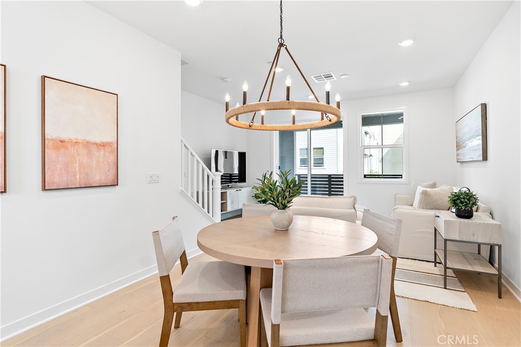 Set within the vibrant Rienda village of Rancho Mission Viejo, this beautifully designed two-bedroom residence offers a rare blend of style, location, and move-in-ready convenience. Positioned directly across from the future Boulder Pond and Park, and just moments from Ranch Cove and the upcoming Rienda K-8 School, the setting alone makes this home a standout. Upstairs, a light-filled open layout unfolds with thoughtful upgrades throughout. Rich oak plank flooring adds warmth and character, while custom lighting enhances the home's modern aesthetic. The kitchen is both refined and functional, featuring a complete GE appliance package, white shaker cabinetry with soft-close hinges, and a layout designed to bring people together. Step out from the living area onto a private balcony where mountain views create the perfect backdrop for quiet mornings or relaxed evenings. On the third level, the primary suite offers a peaceful escape, highlighted by upgraded tile flooring in the bathroom and a calming, retreat-like atmosphere. Immerse yourself in the exceptional amenities of Rancho Mission Viejo, including the vibrant Ranch Camp, the state-of-the-art Ranch Cove community pool and gym, and countless recreational opportunities that define the unmatched lifestyle of this community. Exclusive to Rancho Mission Viejo residents are all amenities in the Villages of Sendero, Esencia, Rienda, and future Villages. There are community amenities for all from breath-taking resort-style pools and spas, Esencia school K-8, community farms, fitness centers, guest house, putting green, bocce ball courts, tennis and pickle ball courts, playgrounds, coffee shop, fire pits, an arcade and so much more!