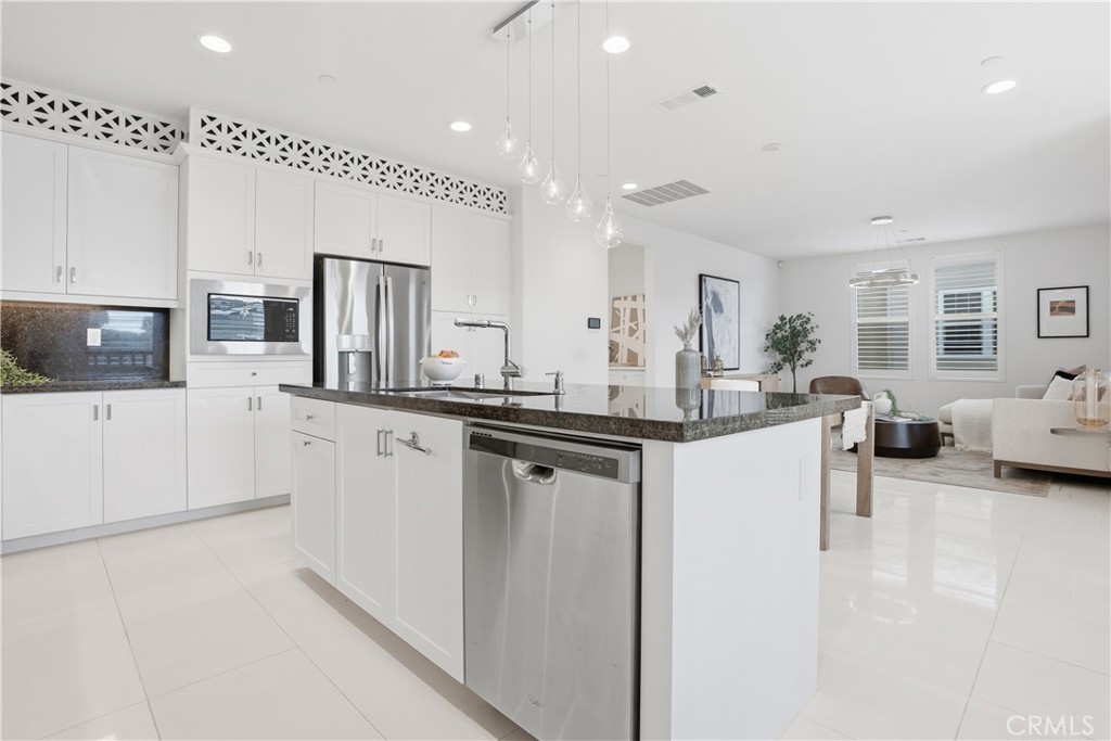 Welcome to an exceptional residence in the highly coveted Sage enclave of Esencia--a sun-drenched, corner-lot, end unit townhome that epitomizes modern luxury living. This elegant 2-bedroom, 2.5-bath home showcases an expansive, open-concept layout situated entirely on a single level, offering an elevated sense of privacy with no neighbors above. Impeccably upgraded, the home features exquisite Portuguese tile flooring, refined stone and granite surfaces, a striking full granite backsplash, and a suite of premium, energy-efficient stainless steel appliances anchored by a designer hooded range. Sophisticated recessed and pendant lighting beautifully complements the home's bright, contemporary aesthetic. Both bedrooms serve as luxurious suites, each appointed with dual vanities, oversized walk-in showers, plantation shutters, and generous walk-in closets. Additional premium enhancements include Energy Star-rated heating and cooling systems, double-pane Energy Star windows, a tankless water heater, and a spacious attached two-car garage. The residence is turnkey and move-in ready with an included washer, dryer, and refrigerator. Enjoy your morning coffee or evening unwind on the private balcony with tranquil peek-a-boo mountain views. As a resident of Esencia, you will indulge in an unparalleled collection of award-winning, resort-style amenities--state-of-the-art fitness centers, crystalline lagoon pools, community farms, al fresco dining pavilions, dog parks, a charming coffee house, an expansive sports park, arcade, scenic walking trails, verdant parks, thoughtfully designed clubhouses, a horse corral, and a vibrant year-round calendar of HOA-curated events.Perfectly situated, you are moments from a blue-ribbon elementary school, a short 15-minute drive to the coast, and just 20 minutes from Irvine via the 241 Toll Road.