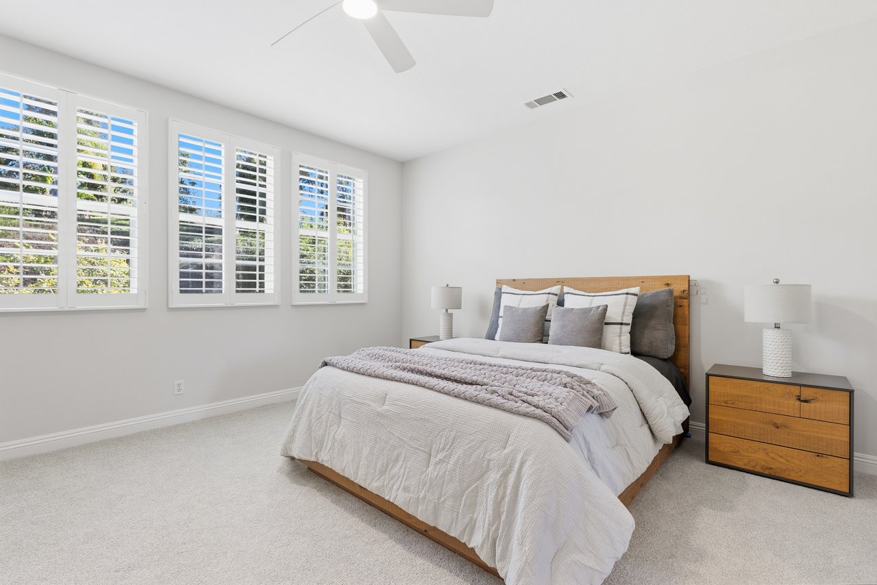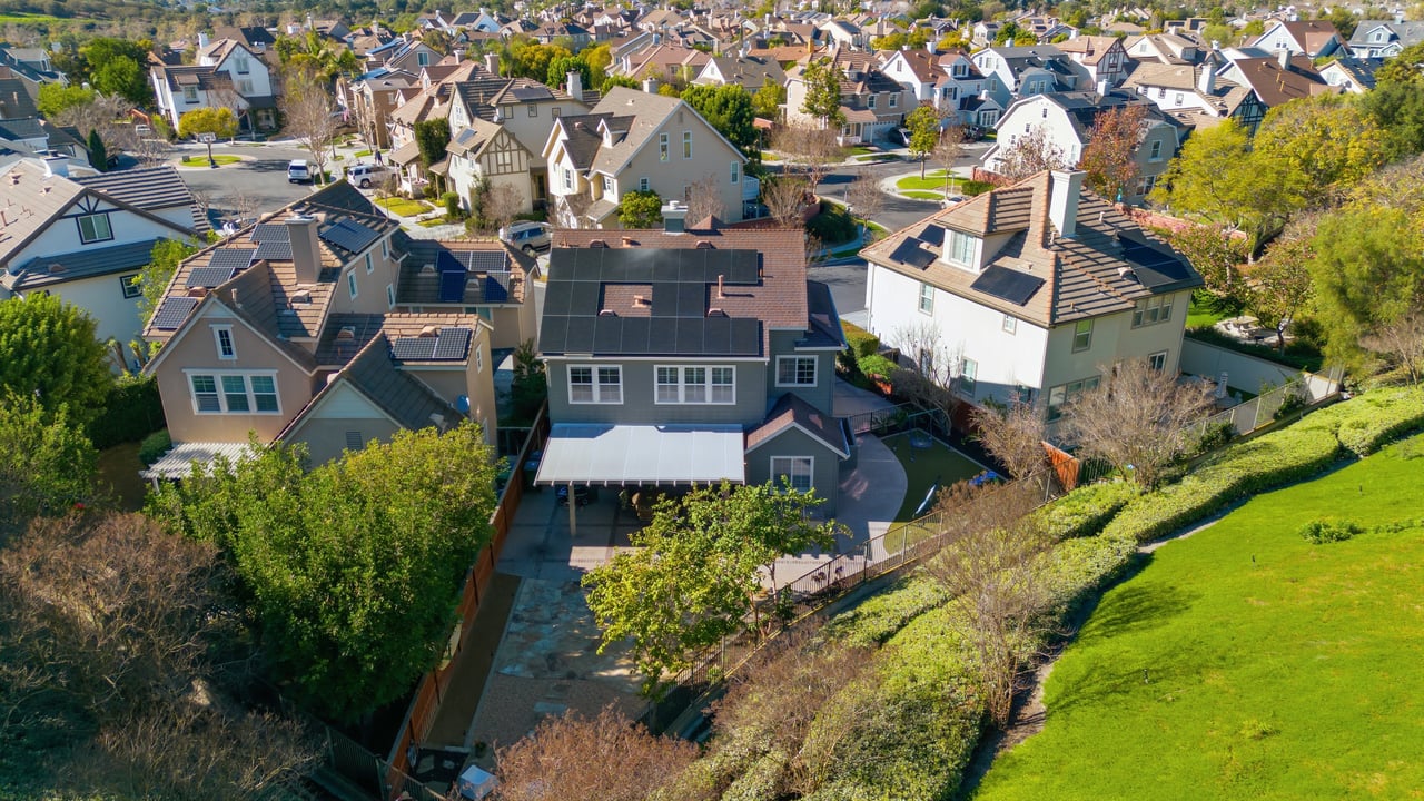 Located in the Weatherhaven neighborhood of Ladera Ranch, this beautifully upgraded residence offers a highly sought-after three-story floor plan with 5 bedrooms, 4 bathrooms, and a versatile bonus loft, paired with one of the largest and most private backyards in the community. The main level welcomes you with generous living and dining spaces, an open kitchen and family room, plus a downstairs bedroom with an adjacent full bath, perfect for guests or multi-generational living. Upstairs, the primary suite is joined by two additional bedrooms and a shared bath, while the third level offers a private bedroom with an ensuite bath and a bonus loft, ideal for a home office, media room, or creative space. Designed for entertaining, the expansive backyard features a putting green, a patio cover with built in heaters and fan, and mature fruit trees including pomegranate, guava, lime, and mandarin, creating a private outdoor retreat. Extensive upgrades completed in 2023 include a brand new kitchen with nano crystalline countertops and a custom tile backsplash, new carpet, fresh interior and exterior paint, updated lighting, ceiling fans, and shades. The home has been fully repiped with PEX and includes a new water heater, updated plumbing fixtures, an epoxy coated garage floor, and a 6.3 kW solar system grandfathered into NEM 2.0 with high voltage EV charging. Thoughtfully updated, energy efficient, and move in ready, this residence represents an exceptional opportunity to own one of Weatherhaven's largest homes with an exceptionally spacious backyard. Exclusive to Ladera Ranch residents are world class amenities including four clubhouses, resort style and plunge pools, a water park, tennis and pickleball courts, basketball courts, a skate park, miles of walking, biking, and hiking trails, year-round events, and award-winning schools.