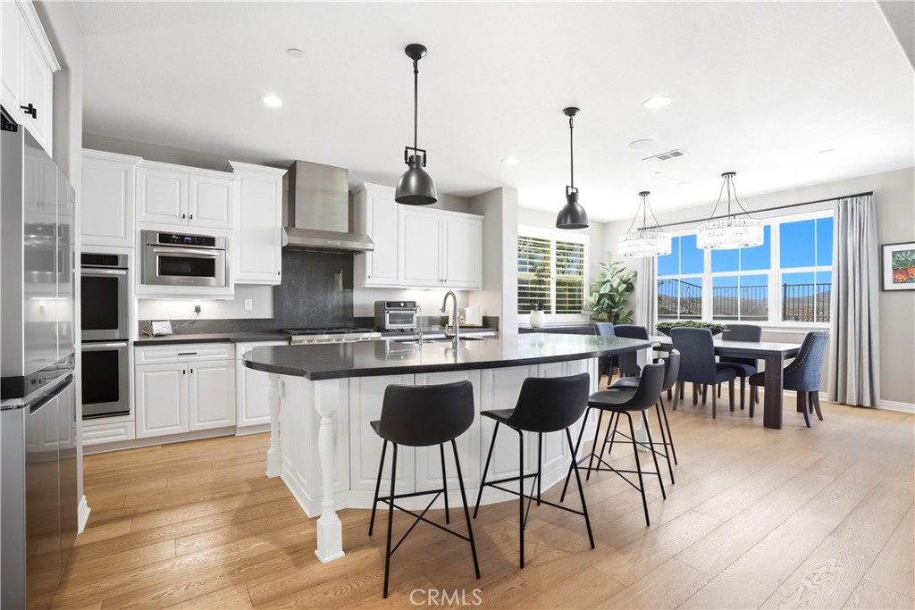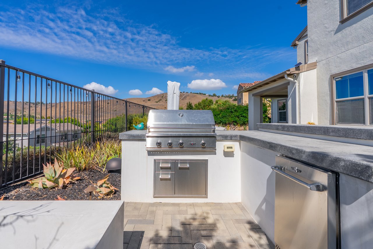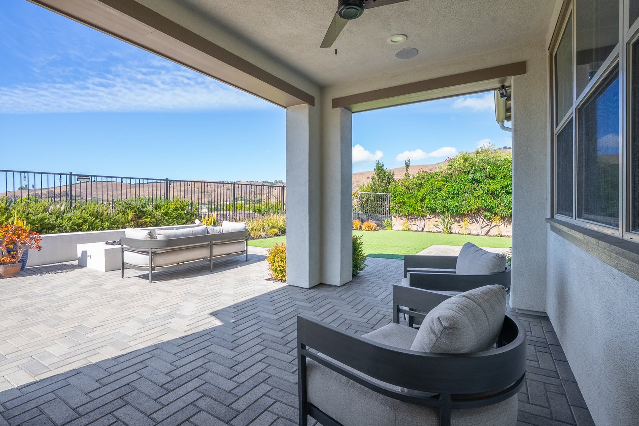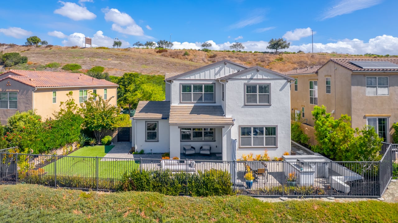 Looking for a view home in the award-winning community of Rancho Mission Viejo? Tucked away on a quiet cul-de-sac in Sendero, this incredible view home sits on a rare ultra-wide, pool-sized lot and offers both privacy and sophistication. With a highly functional open floor plan, the home features 4 bedrooms plus a spacious loft including a desirable main-floor bedroom with its own private bath. The loft upstairs adds versatility, perfect for a home office, media room, or play space. The gourmet kitchen is a showpiece with sleek European quartz countertops, KitchenAid Pro appliances including double ovens and a 6-burner cooktop, and crisp white shaker cabinetry surrounding a large island ideal for gathering and entertaining. Rich light oak hardwood floors, custom built-in cabinetry framing the fireplace, a stylish butler's pantry, wrought iron staircase, and home theater surround sound in the great room all speak to the thoughtful upgrades throughout. Retreat to the primary suite, where a one-of-a-kind granite vanity, expansive walk-in closet, and spa-inspired bath with a soaking tub perfectly positioned to take in the views create an inviting sanctuary. The outdoor spaces are equally impressive, with professional hardscaping that includes a built-in BBQ, refrigerator, and cozy firepit to enjoy stunning sunsets. The California room extends the living area outdoors, providing a shaded retreat to sip coffee or watch kids play in the expansive yard. For future possibilities, the utilities for a pool have already been installed, making this property not only beautiful but primed for your dream backyard. Exclusive to Rancho Mission Viejo residents are all amenities in the Villages of Sendero, Esencia, Rienda and future Villages. There are community amenities for all from breath-taking resort-style pools and spas, Esencia school K-8, community farms, fitness centers, guest house, putting green, bocce ball courts, tennis and pickle ball courts, playgrounds, coffee shop, fire pits, an arcade and so much more!
