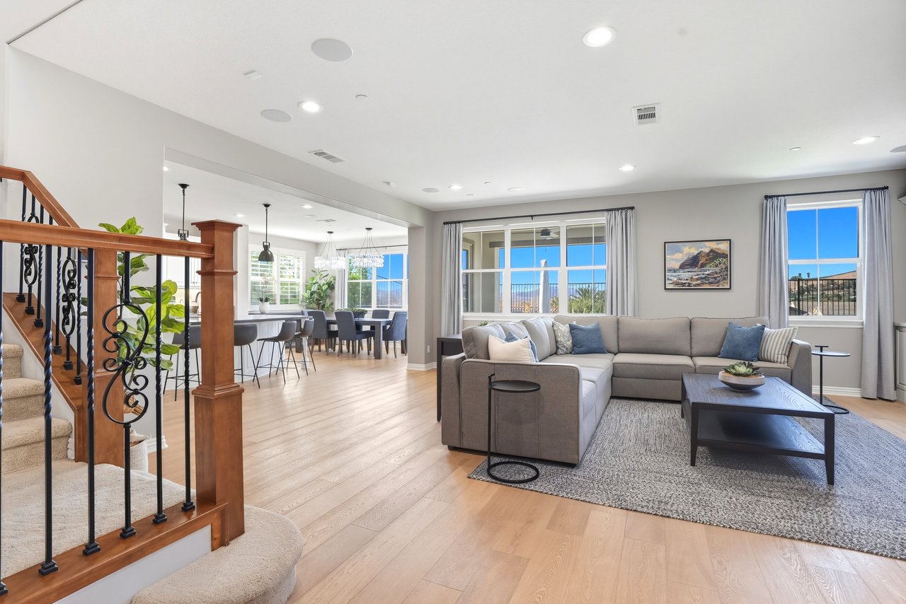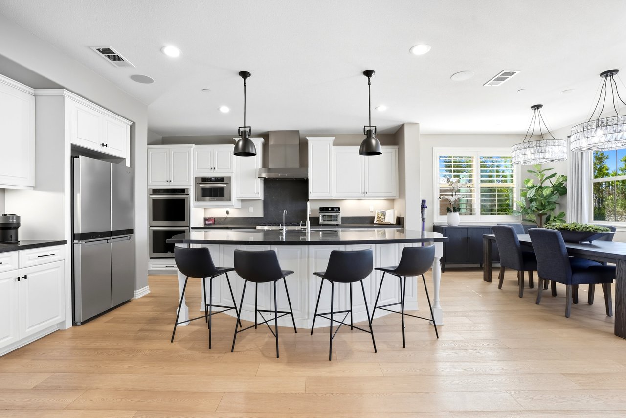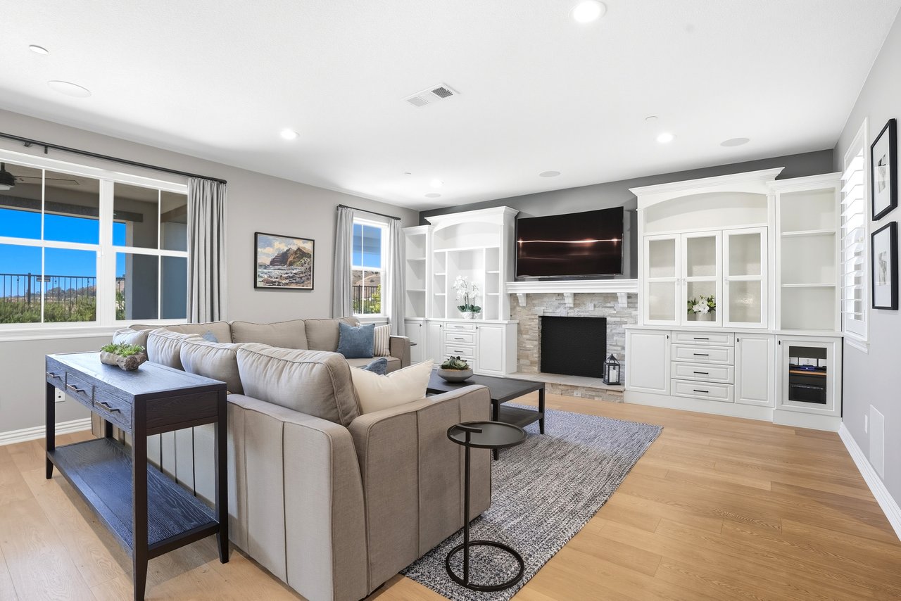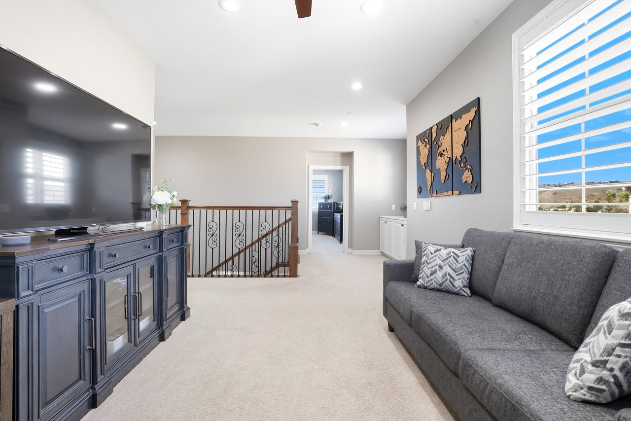 Looking for a view home in the award-winning community of Rancho Mission Viejo? Tucked away on a quiet cul-de-sac in Sendero, this incredible view home sits on a rare ultra-wide, pool-sized lot and offers both privacy and sophistication. With a highly functional open floor plan, the home features 4 bedrooms plus a spacious loft including a desirable main-floor bedroom with its own private bath. The loft upstairs adds versatility, perfect for a home office, media room, or play space. The gourmet kitchen is a showpiece with sleek European quartz countertops, KitchenAid Pro appliances including double ovens and a 6-burner cooktop, and crisp white shaker cabinetry surrounding a large island ideal for gathering and entertaining. Rich light oak hardwood floors, custom built-in cabinetry framing the fireplace, a stylish butler's pantry, wrought iron staircase, and home theater surround sound in the great room all speak to the thoughtful upgrades throughout. Retreat to the primary suite, where a one-of-a-kind granite vanity, expansive walk-in closet, and spa-inspired bath with a soaking tub perfectly positioned to take in the views create an inviting sanctuary. The outdoor spaces are equally impressive, with professional hardscaping that includes a built-in BBQ, refrigerator, and cozy firepit to enjoy stunning sunsets. The California room extends the living area outdoors, providing a shaded retreat to sip coffee or watch kids play in the expansive yard. For future possibilities, the utilities for a pool have already been installed, making this property not only beautiful but primed for your dream backyard. Exclusive to Rancho Mission Viejo residents are all amenities in the Villages of Sendero, Esencia, Rienda and future Villages. There are community amenities for all from breath-taking resort-style pools and spas, Esencia school K-8, community farms, fitness centers, guest house, putting green, bocce ball courts, tennis and pickle ball courts, playgrounds, coffee shop, fire pits, an arcade and so much more!
