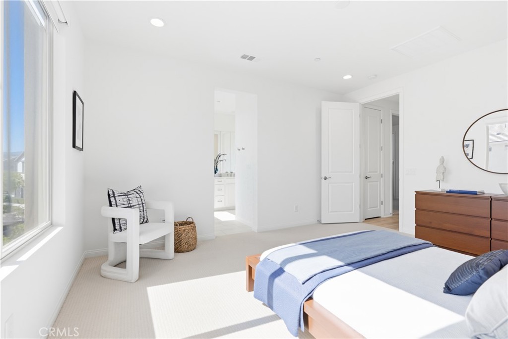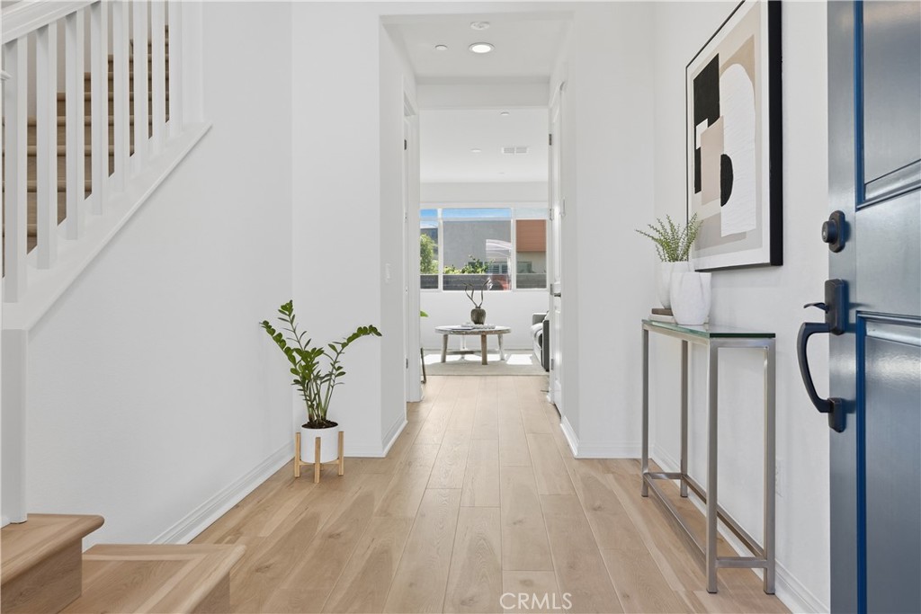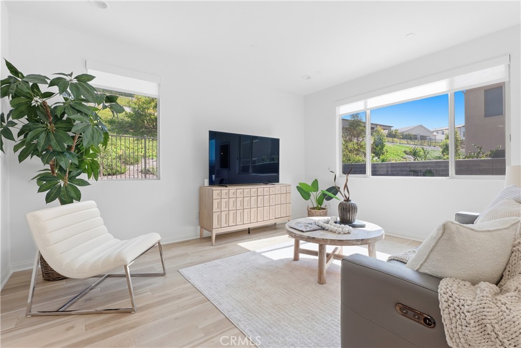 Welcome to this exceptional CORNER LOT home in the desirable Evolve community of Rancho Mission Viejo. Situated on a PREMIUM LOT with an OVERSIZED backyard and side yard overlooking the hill side, this beautifully designed 3-bedroom, 2.5-bath home with a versatile loft offers the perfect blend of modern elegance, comfort, and functionality. The home showcases a bright open-concept layout ideal for both everyday living and entertaining, with abundant natural light and thoughtfully curated upgrades throughout. The gourmet kitchen serves as the heart of the home, featuring gorgeous quartz countertops, stainless steel appliances, full-height backsplash, hood range, center island with seating, self closing cabinet drawers and a large pantry. The kitchen flows seamlessly into the living and dining areas, creating a welcoming and connected space. Upstairs, a flexible loft provides the perfect space for a home office, media room, or additional lounge area. The primary suite is a private retreat, complete with a luxurious en-suite bathroom featuring dual vanities, upgraded tile floors, an oversized walk-in shower with elegant finishes, and a generous walk-in closet. Two additional bedrooms offer generous space and abundant natural light, along with a full bathroom featuring dual sinks and tile flooring. The upstairs laundry room is conveniently located and includes extra storage. This home is enhanced with numerous upgrades, including wood laminate flooring throughout, upgraded carpet in the bedrooms, custom window treatments, recessed lighting, ceiling fans and pendant prewiring, upgraded fixtures, and Energy Star-rated systems. Additional highlights include EV wired 2 car garage, tankless water heater, custom window coverings including remote controlled slider shade and PAID OFF SOLAR for efficiency and sustainability. Step outside to a generously sized backyard--perfect for relaxing, dining, or entertaining while enjoying peaceful views and open space. Ideally located near Ranch Camp and within walking distance to Rancho Mission Viejo's world-class amenities, residents enjoy access to resort-style pools and spas, fitness centers, community farms, parks, playgrounds, sports courts, trails, a K-8 school, coffee shop, arcade, and more. This home offers an unparalleled opportunity to experience elevated living in one of Orange County's premier master-planned communities.