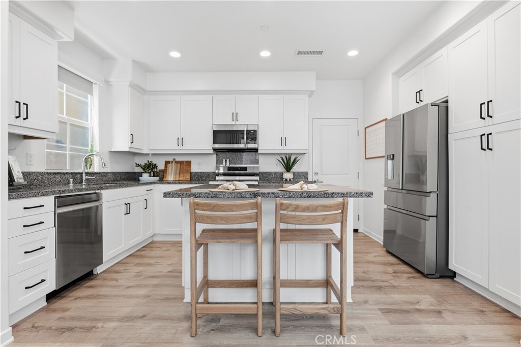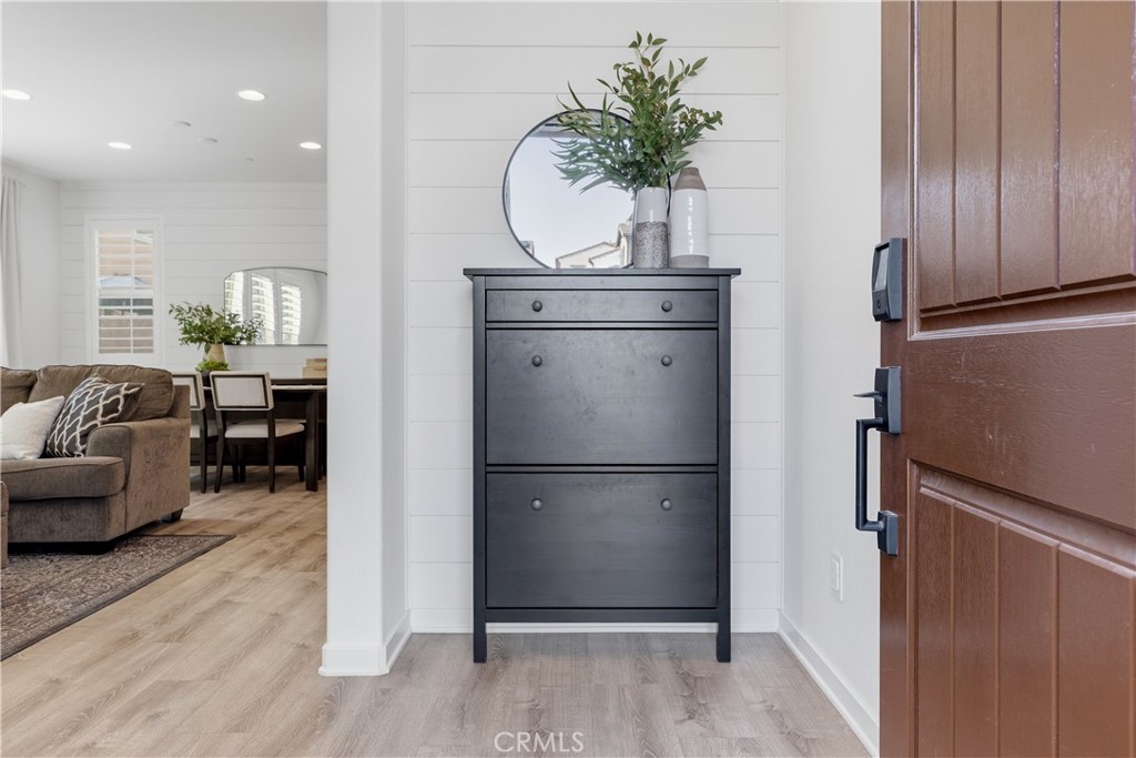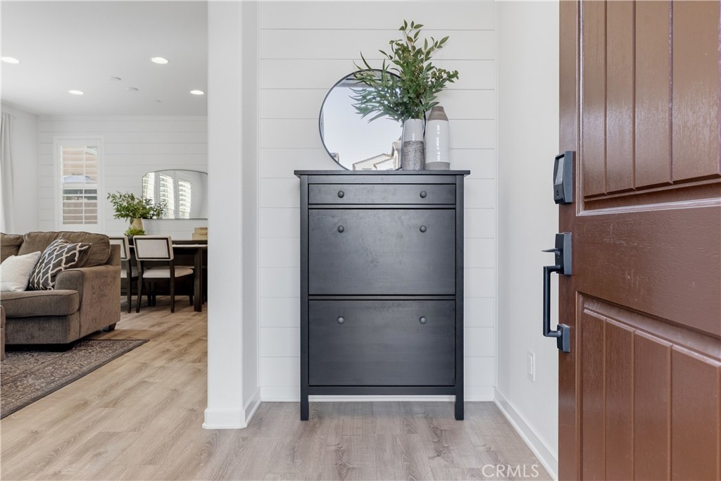 Welcome to 43 Fosco, a beautifully upgraded home in the award-winning community of Rancho Mission Viejo, ideally located just a short walk from the North Plunge Pool and Esencia K-8 School. From the moment you step inside, the home feels bright, welcoming, and thoughtfully designed. Luxury vinyl plank flooring runs throughout the main level, creating a clean and modern feel that flows seamlessly through the open-concept great room and kitchen. The kitchen serves as the heart of the home, featuring white shaker cabinetry, granite countertops, and a spacious island perfect for gathering with family and friends. The living room is enhanced by a custom built-in next to the fireplace, adding both style and functional storage while creating a warm focal point for the space. Upstairs, the bedrooms offer comfort and privacy with plush carpet, while the laundry room has been upgraded with additional cabinetry and a convenient hanging rod to simplify everyday living. Additional highlights include fully paid solar with 14 panels, pre-wiring for an EV charger, epoxy-coated garage floors, and overhead storage racks in the garage. Outside, the backyard features concrete slab hardscaping, creating an easy-maintenance space ready for outdoor dining, relaxing, or entertaining. Immerse yourself in the exceptional amenities of Rancho Mission Viejo, including the vibrant Ranch Camp, the state-of-the-art Ranch Cove community pool and gym, and countless recreational opportunities that define the unmatched lifestyle of this community. Exclusive to Rancho Mission Viejo residents are all amenities in the Villages of Sendero, Esencia, Rienda, and future Villages. There are community amenities for all from breath-taking resort-style pools and spas, Esencia school K-8, community farms, fitness centers, guest house, putting green, bocce ball courts, tennis and pickle ball courts, playgrounds, coffee shop, fire pits, an arcade and so much more!