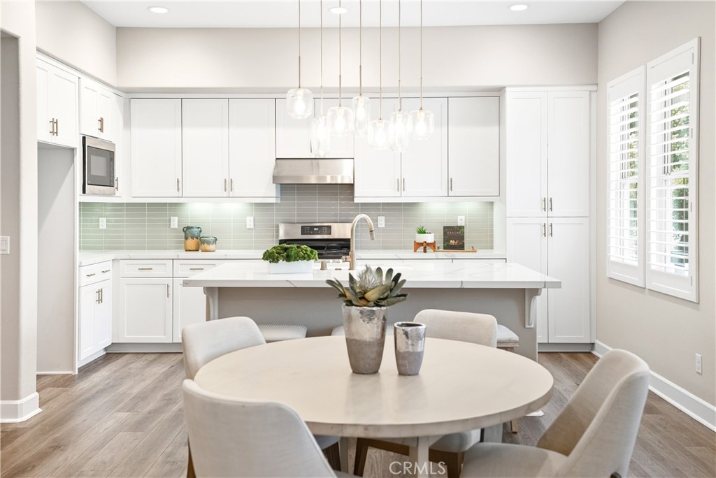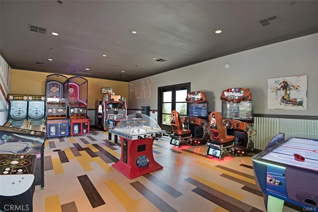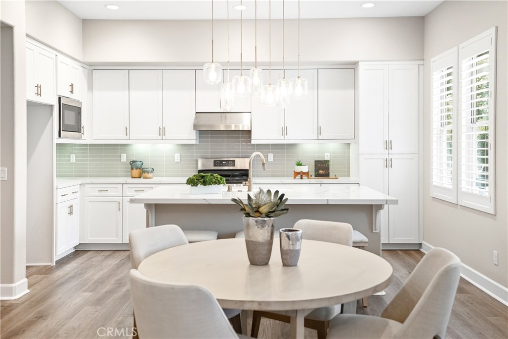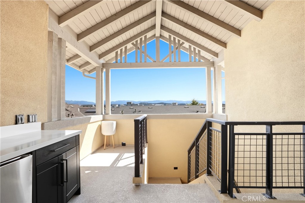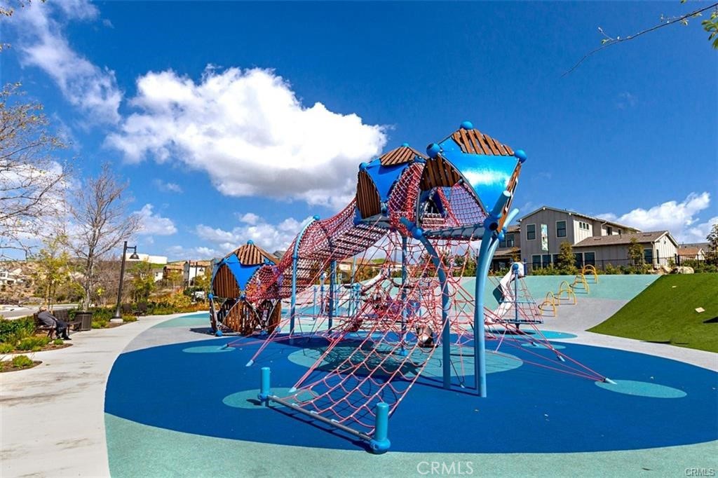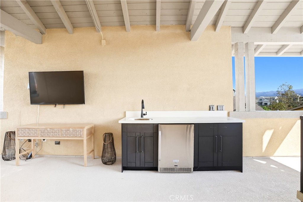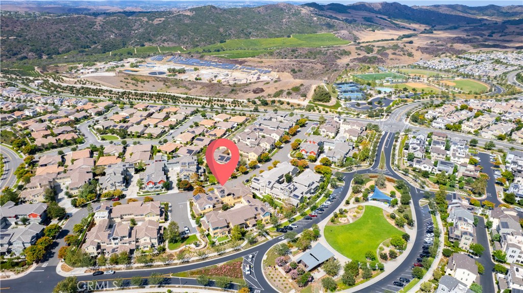 Upstairs, the luxurious primary suite offers a true retreat with a spacious walk-in closet, beautifully upgraded ensuite bathroom with tiled shower and floor, quartz countertops and dual vanities. Two additional bedrooms, a full guest bathroom with dual sinks, and an upper-level laundry room with added cabinetry provide plenty of space and convenience for daily living. The third-level covered rooftop deck boasts panoramic mountain views and is ideal for BBQs, al fresco dining--with a built-in sink, refrigerator, and counter space--or simply lounging with a built-in TV setup. Additional home features include touchless keypad entry, custom window coverings including wood shutters and blinds, double pane windows, upgraded light fixtures, downstairs framed mirror, modern hardware, direct access 2-car garage with overhead storage and ball rack, and Energy Star features integrated throughout the home. You will also have access to award-winning amenities such as baseball fields, playgrounds, a sports park, the Canyon House, Blue Hummingbird Coffeehouse, The Pond, Lagoon and Lake, Camp Out facility, resort-style pools, the farms, an arcade, state-of-the-art workout gyms, dog park, a zipline, splash pads, biking trails, NEV roads, and tennis and pickleball courts (to name a few). Additionally, it is just 15 minutes from the beach and conveniently located near the 241 freeway