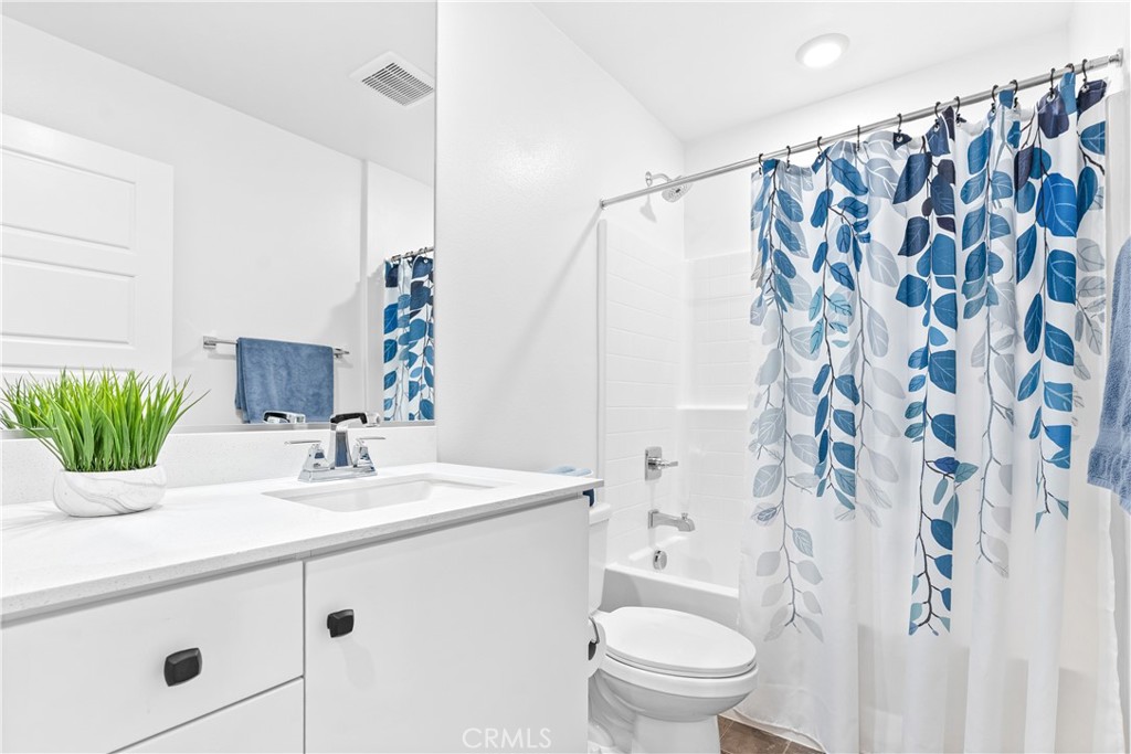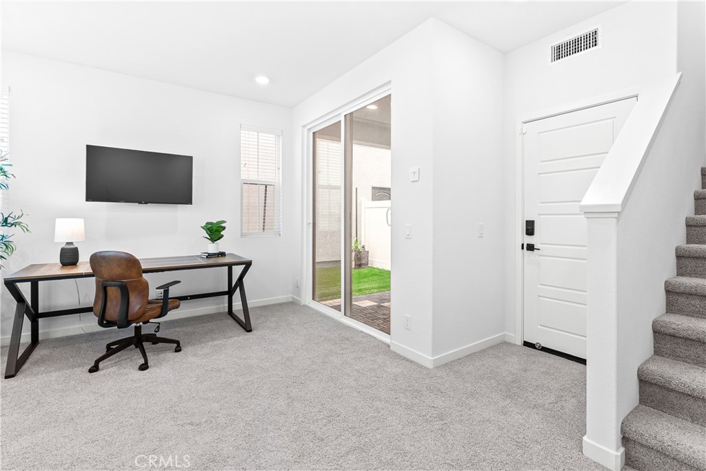Welcome to this beautifully maintained, truly turnkey 2-bedroom home plus a versatile ground-level flex space with just ONE LOW HOA fee of $304!!! This residence offers an ideal blend of style, function, and modern upgrades. The ground-level flex space offers endless possibilities--perfect for a private home office, personal gym, or creative studio--providing quiet separation from the rest of the home. You will find luxury vinyl plank flooring in the kitchen and living rooms, upgraded carpet in the den and bedrooms, and wooden blinds throughout. The open kitchen is a chef's delight, showcasing quartz countertops, a full tile backsplash, walk in pantry and stainless-steel appliances. Upstairs, the primary suite offers dual closets (including a fully customized system in one), a barn door entry to the en-suite bath, and a beautifully tiled-to-ceiling shower for a spa-like feel. The secondary bedroom is generously sized--large enough to accommodate two beds--making it perfect for kids or guests. Outdoor living is equally impressive, with a large porch at the entry, a second-story deck, and a backyard with a covered patio--offering multiple spaces for entertaining and relaxation. The landscaped front yard features low-maintenance turf, vibrant flower beds, a lemon tree, and a drip irrigation system. The side yard is equally charming with a decked patio, flower boxes, succulents, hanging lights, and a Ring motion sensor on the gate. Additional highlights include a 2-car garage with epoxy-coated floors and an EV charging station. Smart home features such as keyless entry on both the garage and front doors, a Ring doorbell, and a security system enhance everyday convenience. Energy-efficient upgrades complete the package, including leased solar, an LG Wash Tower with center controls, a tankless water heater, Energy Star appliances, and double-pane windows throughout.