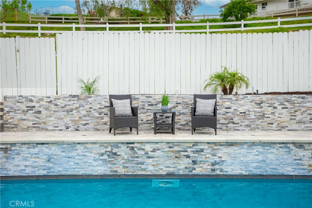 Indulge in the luxuries of your own private resort! This entertainer's paradise promises the pinnacle of indoor-outdoor living, boasting a stunning saltwater pool complete with a Baja shelf for basking in the sun and a swim jet for endless laps. Step into the expansive loggia with soaring vaulted ceilings, cozy overhead heaters, convenient roller shades, ambient recessed lighting, and refreshing ceiling fans. Relax and unwind in your private pool and spa, surrounded by stunning greenery. Enjoy al fresco dining with family and friends and immerse yourself in the serenity of this magical oasis. Beyond lies direct access to a network of scenic hiking, biking, and horse trails, seamlessly blending luxury, seclusion, and the tranquility of nature. Located in the heart of the home, the chef's kitchen is a culinary masterpiece featuring semi-custom cabinetry, state-of-the-art appliances, a central island crowned with a 6-burner Wolf cooktop, double ovens, and a delightful breakfast bar. The open concept design and traditional floor plan make this estate perfect for every lifestyle. Whether hosting formal dinners in the elegant living and dining rooms or enjoying cozy game nights by the wood-burning fireplace, this estate exudes warmth and hospitality. Retreat to your secluded primary suite, complete with dual vanities, an abundance of closet space, and unobstructed views of green hills. Four additional bedrooms are located upstairs, including one with dual closets and extensive built-in storage, ideal for a home office or craft haven. Nestled in a cul-de-sac on one of the largest lots in the neighborhood, this property affords unparalleled privacy and abundant space for outdoor pursuits, gardening endeavors, and beyond. With NO HOA, you'll have access to all the amenities that Yorba Linda has to offer, including top rated schools, free choice to attend Yorba Linda High School AND Esperanza High School, parks, shopping, dining, and entertainment.