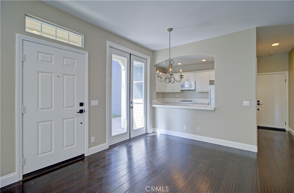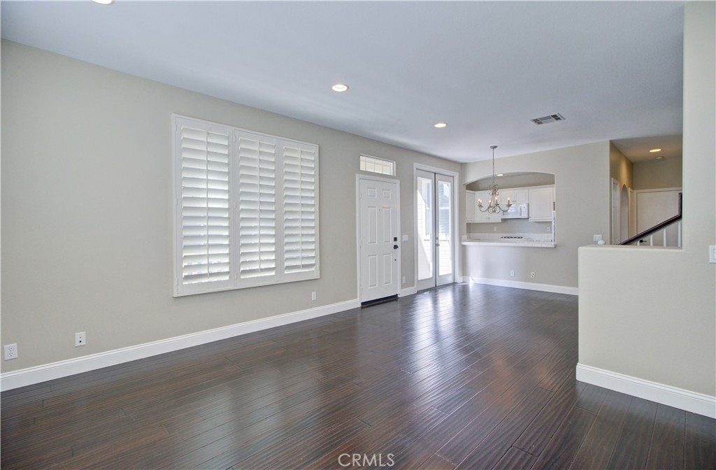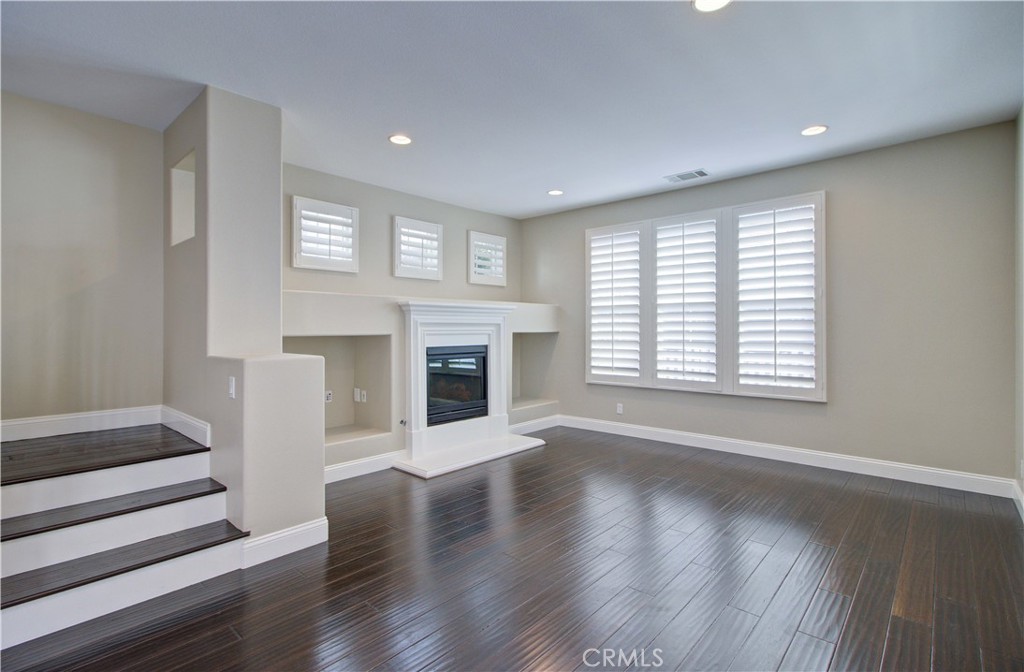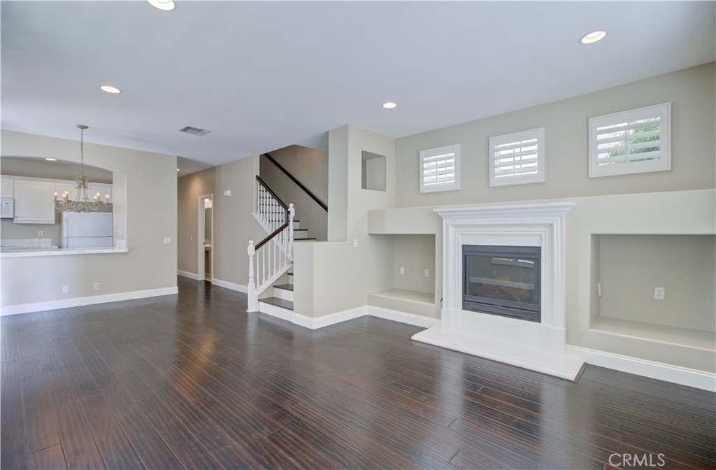 Outstanding detached three-bedroom home located in the desirable Surrey Farm community of Ladera Ranch. Charming white picket fence offers excellent curb appeal. Bright living room features a cozy fireplace, custom built-in media cabinets, plantation shutters, and crown molding, and opens to the dining area.