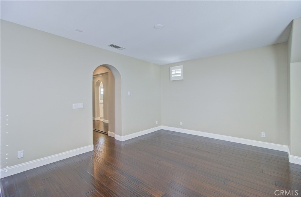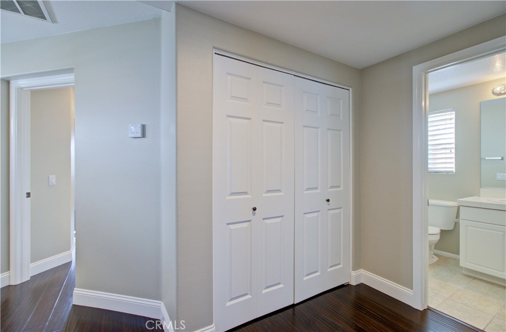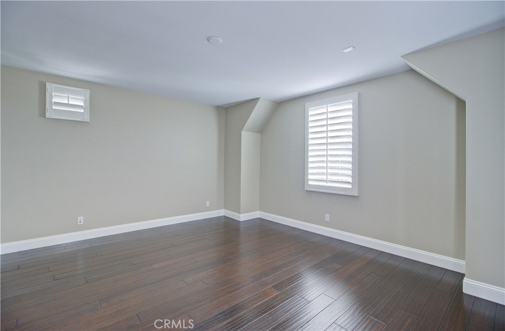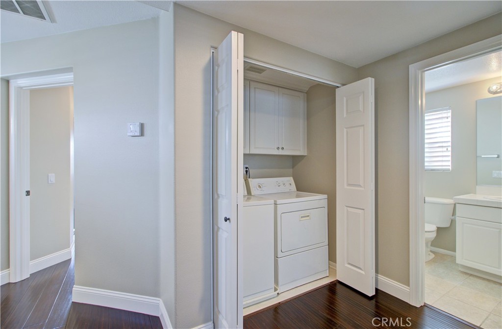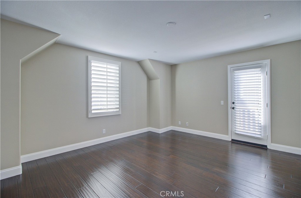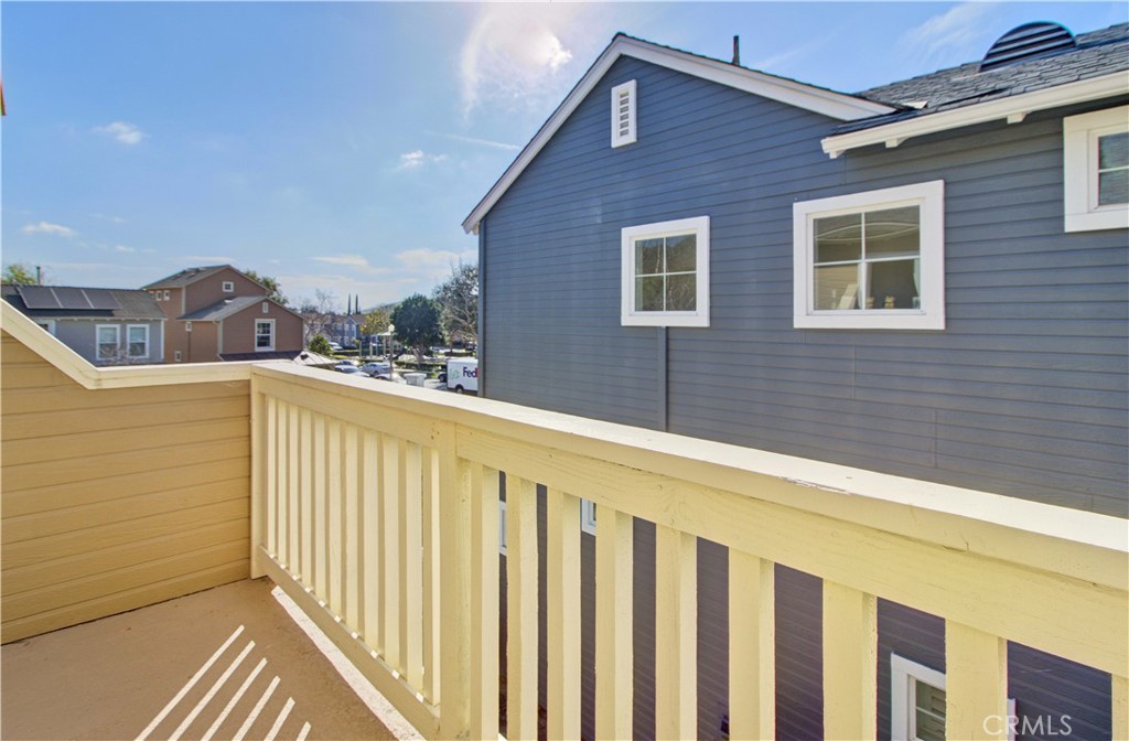Upstairs primary suite offers volume ceilings, a private balcony, and a luxurious bath with dual sinks, jacuzzi tub, separate shower, and walk-in closet. Two spacious secondary bedrooms, shared bath, and convenient upstairs laundry complete the home. Tastefully upgraded with dark hardwood flooring throughout and fresh interior and exterior paint.