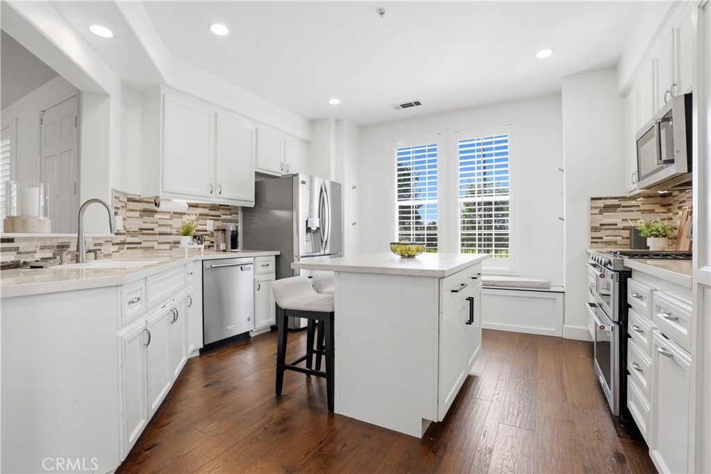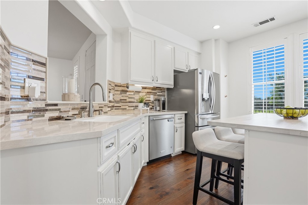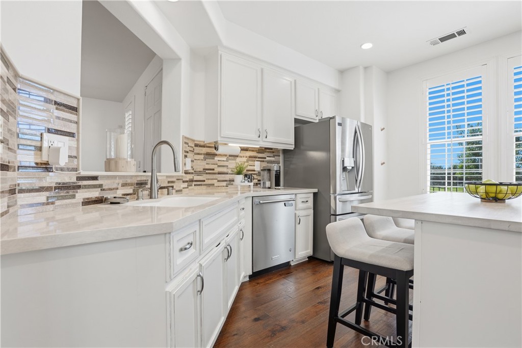 View Home in Ladera Ranch! Directly across from the iconic Founders Park, this stunningly upgraded 3 bedroom, 2.5 bathroom (plus office) home offers approximately 1,957 sq. ft. of bright, inviting living space. From the moment you arrive, the beautiful curb appeal and tranquil park views set the tone. Step inside to a flowing open floor plan featuring a formal living room, an oversized family room with fireplace, large bright windows, and warm hardwood floors. The light and airy kitchen is a chef's delight--complete with stone and wood countertops, modern tile backsplash, upgraded wood cabinets, stainless steel appliances, a stovetop griddle, dual ovens, plentiful counter space, and a charming wood bench sitting area and peek-a-boo breakfast bar. Overlooking both the family room and the peaceful scenery of Founders Park, this main level is ideal for entertaining or unwinding. The downstairs also includes a dedicated office space, guest powder room with modern wood cabinets and tile floors, and access to an intimate backyard perfect for gatherings. Upstairs, the spacious master suite offers high ceilings, a walk-in closet, upgraded bathroom retreat with wood floors, dual sinks, modern cabinets, quartz countertops and floor to ceiling tiled shower with dual shower heads--all enhanced by serene park views. Two additional large bedrooms, a full bathroom with quartz countertops and upgraded cabinets, and an indoor laundry room complete the upper level. A direct-access 2-car garage wired for an EV Charger and extra utility/storage room provide exceptional convenience and functionality. Other home highlights include upgraded mirrors, hardware and cabinetry, ring security system, high speed internet, separate mud room and modern builtins and wains coating throughout.