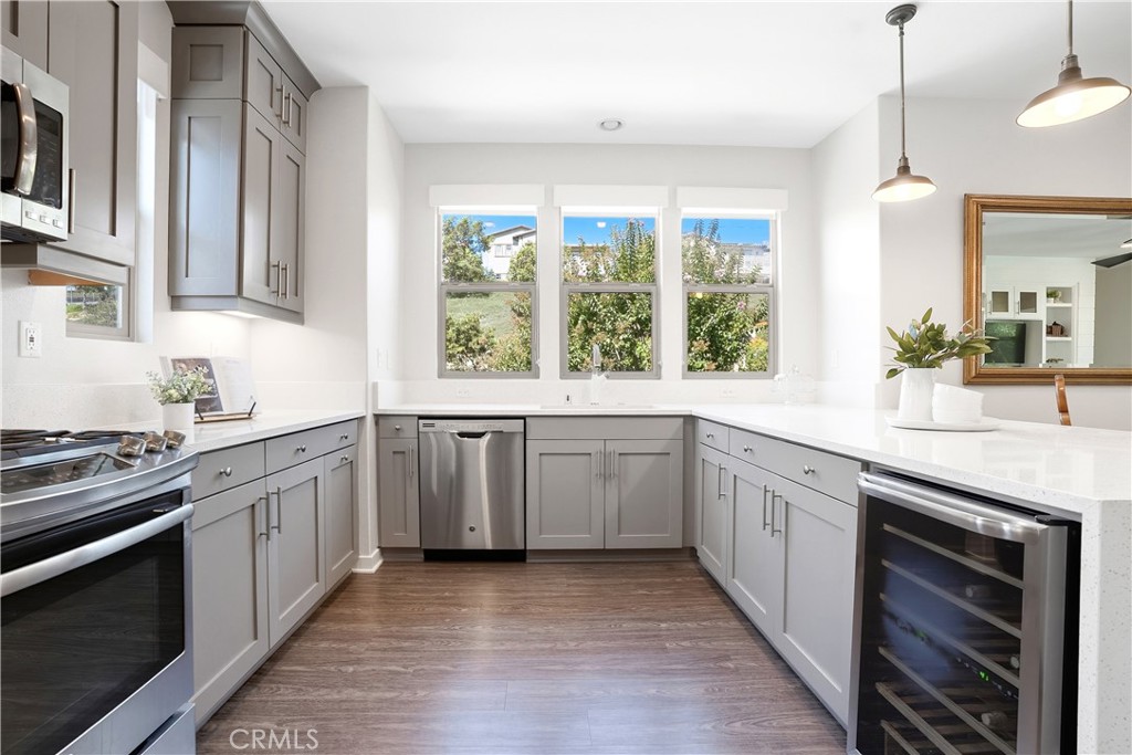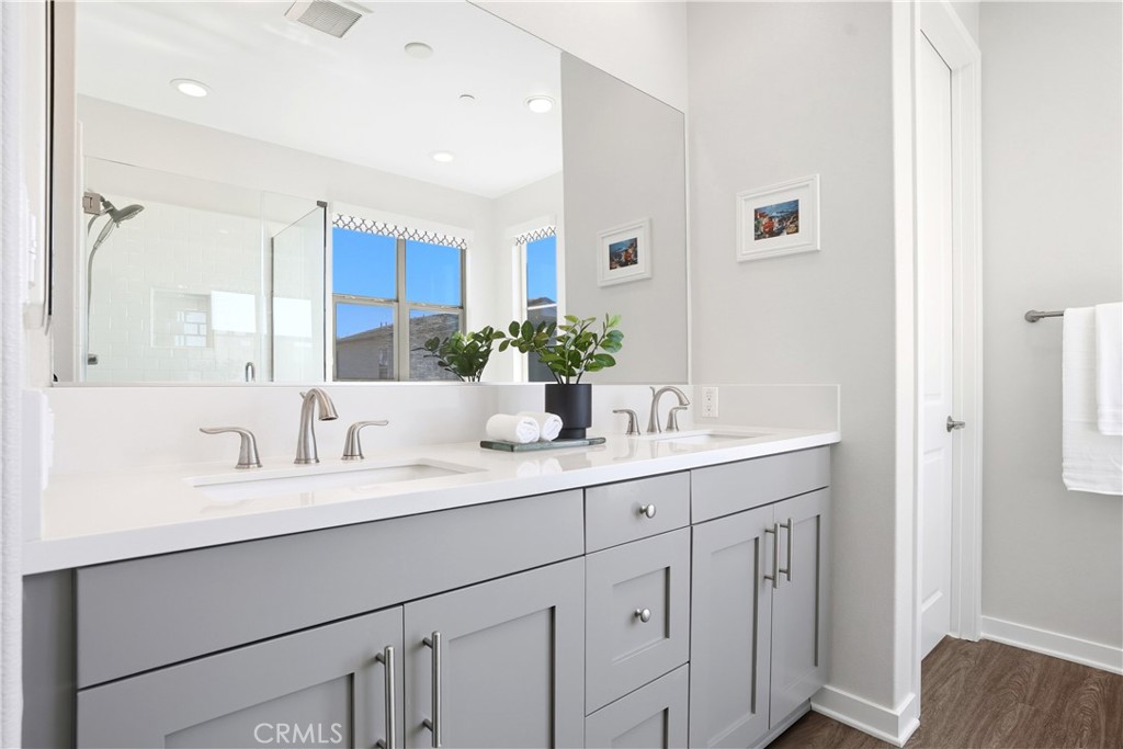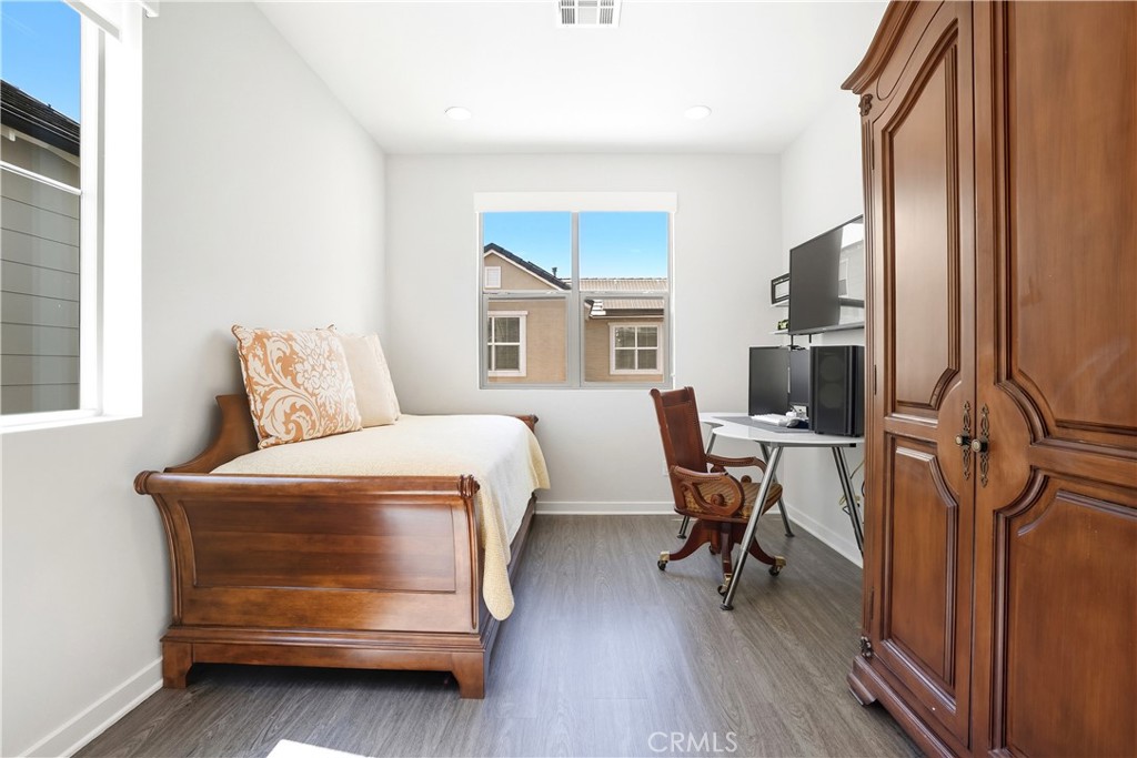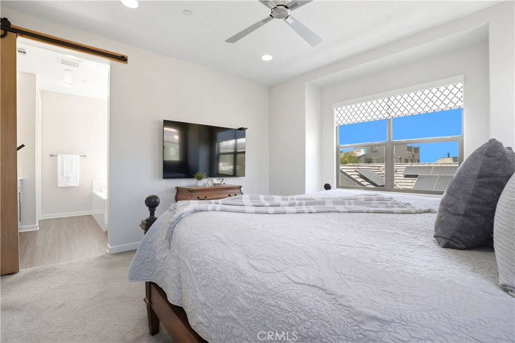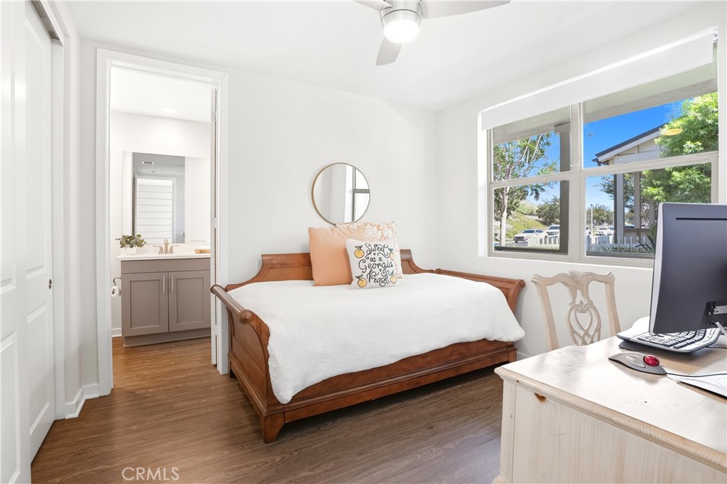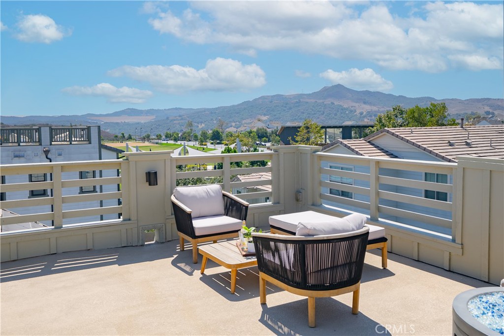 Nestled within the highly sought-after Trellis neighborhood of Esencia, this beautifully upgraded home showcases the community's largest floor plan, offering three spacious bedrooms plus a versatile office that can easily be converted into a fourth bedroom. Trellis is celebrated for its charming collection of modern farmhouses, perfectly capturing the essence of contemporary South Orange County living. From the moment you arrive, you're welcomed by a picturesque white picket fence, lush landscaping, and a generous wraparound front porch that sets the tone for the warmth and style found inside. The first level features a thoughtfully designed guest bedroom and a full bathroom, creating an ideal space for visitors or multi-generational living. Upstairs, the expansive second floor embraces an open-concept great room design, where the kitchen, dining, and family room flow seamlessly together. The kitchen has been modernly appointed with quartz countertops, gray cabinetry, stainless steel appliances, a designer backsplash, and durable faux-wood flooring. A custom shiplap wall and Restoration Hardware ceiling fan add stylish character, while the wraparound balcony extends the living space outdoors, providing the perfect setting for entertaining or enjoying the coastal breeze. The primary suite offers a peaceful retreat with a spacious walk-in closet and a luxurious en-suite bathroom featuring dual sinks, a romantic soaking tub, and a walk-in shower. An additional secondary bedroom and bathroom, along with a convenient laundry area, complete this level. The crown jewel of the home is the expansive rooftop deck, an entertainer's dream with plenty of room for gatherings, relaxation, and taking in breathtaking panoramic views. Blending modern upgrades with timeless farmhouse charm, this residence is a rare opportunity to own one of Trellis' most desirable homes. Exclusive to Rancho Mission Viejo residents are all amenities in the Villages of Sendero, Esencia, Rienda and future Villages. There are community amenities for all from breath-taking resort-style pools and spas, Esencia school K-8, community farms, fitness centers, guest house, putting green, bocce ball courts, tennis and pickle ball courts, playgrounds, coffee shop, fire pits, an arcade and so much more!
