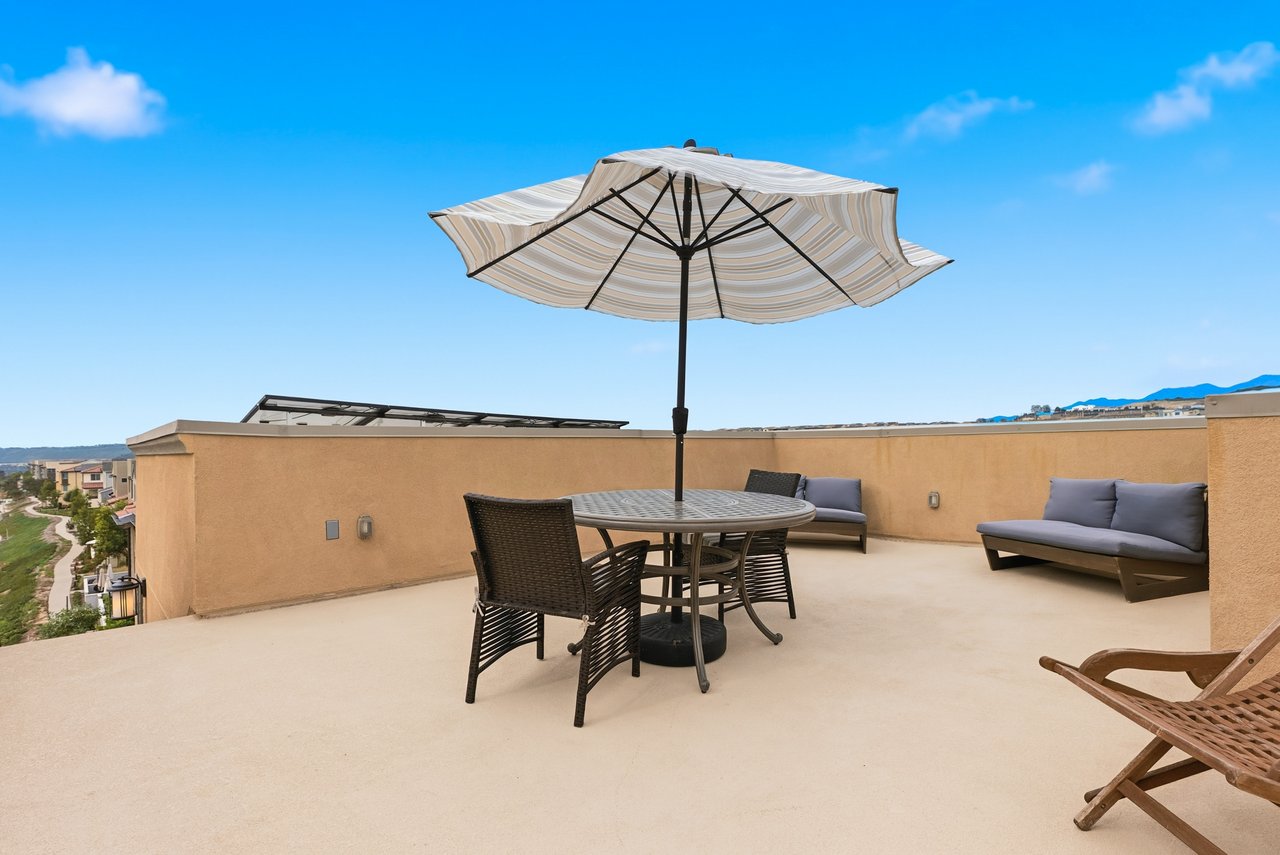 Perched on a premium corner lot, 75 Gander Court captures the essence of Rancho Mission Viejo living with panoramic hill views, abundant natural light, and multiple outdoor spaces designed to be enjoyed year-round. From the moment you arrive, the home's expansive front patio sets the tone, featuring a custom tile design and sweeping views that create the perfect setting for morning coffee, sunset dinning, or entertaining friends under the open sky. Inside, the home is filled with light and an easy, open flow that complements everyday living. Thoughtful upgrades add both comfort and efficiency, including paid solar to help keep energy costs low and a 220V outlet in the garage, ideal for an EV charger or workshop needs. Every space feels intentional, bright, and connected to the outdoors. One of the home's standout features is the rooftop deck, where elevated sightlines deliver incredible hill views and a private retreat to unwind, entertain, or simply take in the scenery. Whether hosting evening get-togethers or enjoying quiet moments above it all, this space truly sets the home apart. With its rare corner-lot location, exceptional outdoor areas, and energy-smart features, 75 Gander Court offers a lifestyle that blends comfort, views, and modern convenience in one of Rancho Mission Viejo's most desirable settings. Immerse yourself in the exceptional amenities of Rancho Mission Viejo, including the vibrant Ranch Camp, the state-of-the-art Ranch Cove community pool and gym, and countless recreational opportunities that define the unmatched lifestyle of this community. Exclusive to Rancho Mission Viejo residents are all amenities in the Villages of Sendero, Esencia, Rienda, and future Villages. There are community amenities for all from breath-taking resort-style pools and spas, Esencia school K-8, community farms, fitness centers, guest house, putting green, bocce ball courts, tennis and pickle ball courts, playgrounds, coffee shop, fire pits, an arcade and so much more!