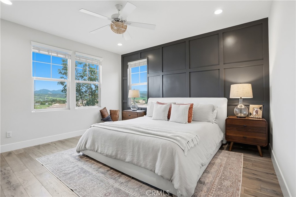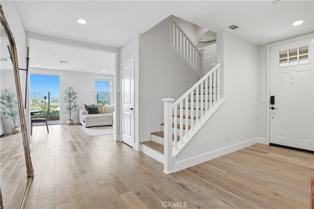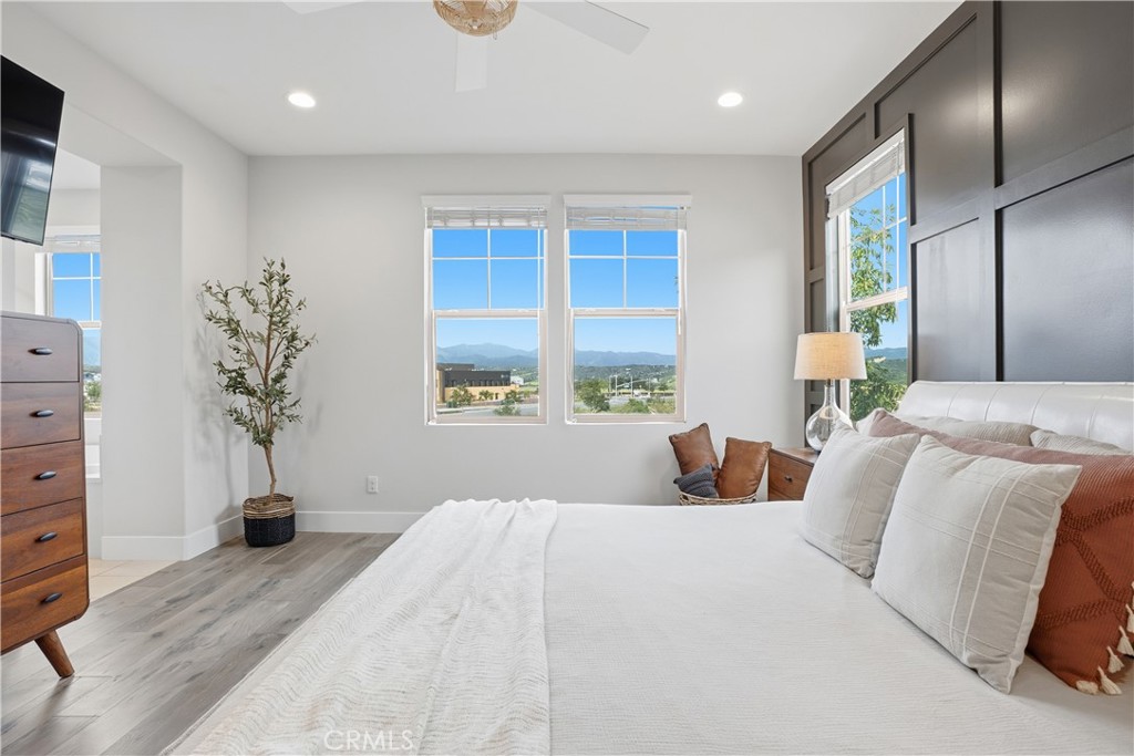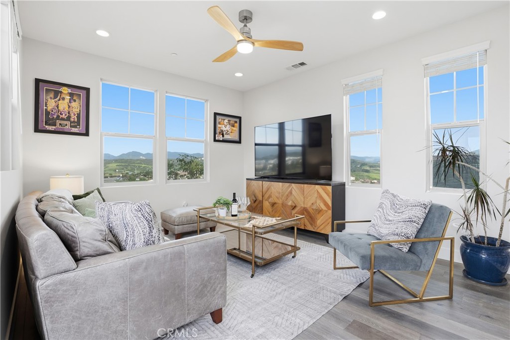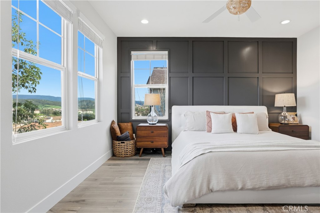 Welcome to this stunning, highly upgraded Canopy Plan 3X residence nestled in the award-winning community of Rancho Mission Viejo, where sweeping unobstructed panoramic views stretch endlessly from every level of the home. From the moment you step inside, you're welcomed by an expansive, sun-drenched living space that seamlessly blend indoor and outdoor living. The airy open-concept floor plan is designed for both everyday living and elegant entertaining. The gourmet kitchen serves as the heart of the home, beautifully appointed with top-of-the-line appliances, custom cabinetry, and an oversized island perfect for hosting guests, casual dining, or creating memorable gatherings. This home offers four spacious bedrooms retreats (including a first floor bedroom and bathroom) with thoughtfully designed, organized closet systems. A large versatile loft equipped with a wet bar and wine refrigerator provides additional living space, ideal for a media room, lounge, or private home office. Crowned by a spectacular rooftop deck with sunshade and fireplace, the home truly shines--offering unobstructed views of rolling hills and the city skyline, making it the perfect setting for sunset entertaining or quiet evenings under the stars. The backyard also offers spectacular mountain views, a sitting area and room for outdoor play. Additional highlights include rich wood flooring throughout, upgraded insulation, an intercom system, LED recessed lighting, designer shiplap accent walls, Wainscoting, extensive built-ins, garage cabinetry with overhead storage and epoxy flooring, a custom built-in office desk, primary bathroom vanity area, custom mirror frames, and fresh interior paint. Ideally located directly across from Esencia Green Park and just a short walk to North Plunge and Esencia Sports Park, this home offers both tranquility and convenience. Residents enjoy access to an impressive array of resort-style amenities, including pools and spas, fitness centers, a guest house, putting green, bocce ball courts, tennis and pickleball courts, playgrounds, a coffee shop, fire pits, arcade, and more.