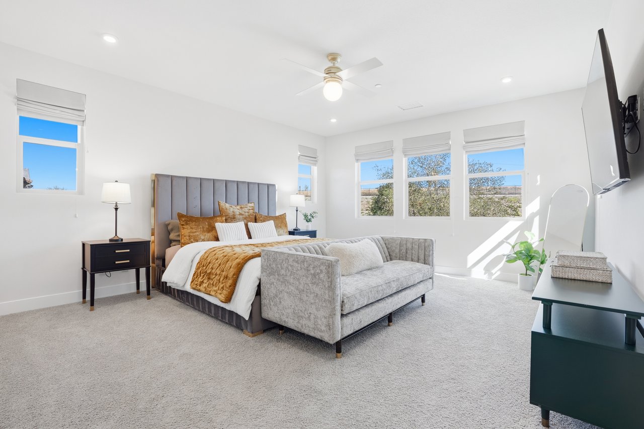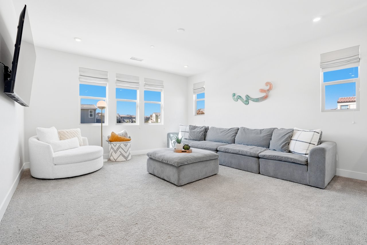 If you've been waiting for a home in RMV with an actual usable yard and plenty of living space inside, this is the one. Welcome to 920 Bunkhouse, located in Dahlia within the award-winning community of Rancho Mission Viejo. Thoughtfully designed and upgraded throughout, this home features 4 bedrooms, a large upstairs loft, and 3 full bathrooms including a highly sought-after main-level bedroom and bath for guests, multigenerational living, or a dedicated home office. The moment you walk in, the home feels intentional, bright, welcoming, and elevated. The open-concept great room is enhanced with designer touches like upgraded lighting, detailed wainscoting, and premium hardware. The kitchen anchors the space beautifully, offering high-end appliances, custom cabinetry, a walk-in pantry, and fresh paint throughout that gives the home a clean, modern feel. Where this property truly stands apart is the backyard. A large California room extends your living space outdoors and opens to one of the largest, most usable lots in the neighborhood. Flat, private, and ready to be imagined whether that means a pool, garden, outdoor kitchen, or play space. A charming side yard accented with cafe lights and planters creates the perfect spot to unwind in the evenings. Upstairs, the oversized loft offers flexibility use it as a second living room, media lounge, or easily convert it to a 5th bedroom if desired. The secondary bedrooms are thoughtfully finished with upgraded window treatments, including blackout shades in one, and are serviced by a shared bath with dual vanities and generous linen storage. The laundry room adds function with additional cabinetry. The primary suite feels like your own private retreat complete with a spacious walk-in closet and a spa-inspired bathroom featuring dual vanities, a stand-alone soaking tub, and a large walk-in shower. Homes with this combination of space, design, and yard size don't come around often in RMV and when they do, they go fast. Exclusive to Rancho Mission Viejo residents are all amenities in the Villages of Sendero, Esencia, Rienda, and future Villages. There are community amenities for all from breath-taking resort-style pools and spas, Esencia school K-8, community farms, fitness centers, guest house, putting green, bocce ball courts, tennis and pickle ball courts, playgrounds, coffee shop, fire pits, an arcade and so much more!